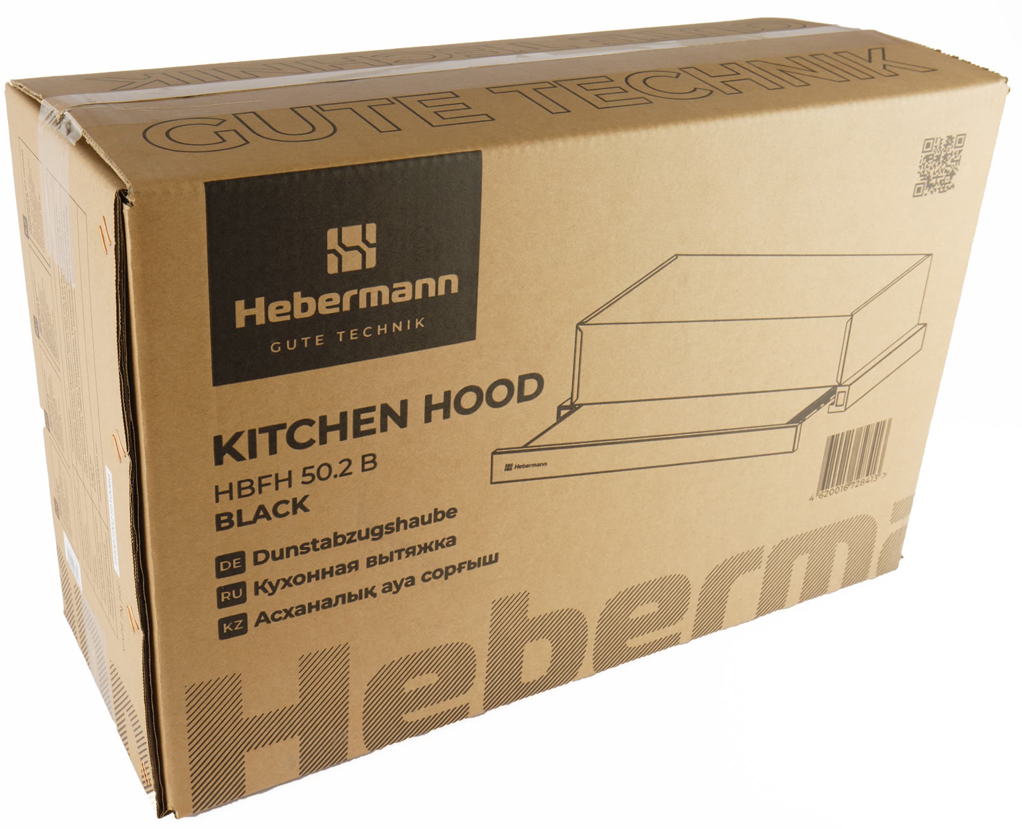 Вытяжка Hebermann HBFH 50.2 B — компактный встраиваемый прибор для небольшой кухни или квартиры-студии. Благодаря складной конструкции она не занимает много места, сохраняя неплохую площадь фильтрации в рабочем положении.