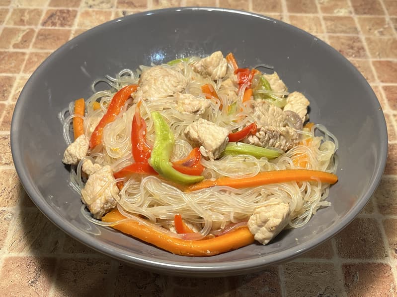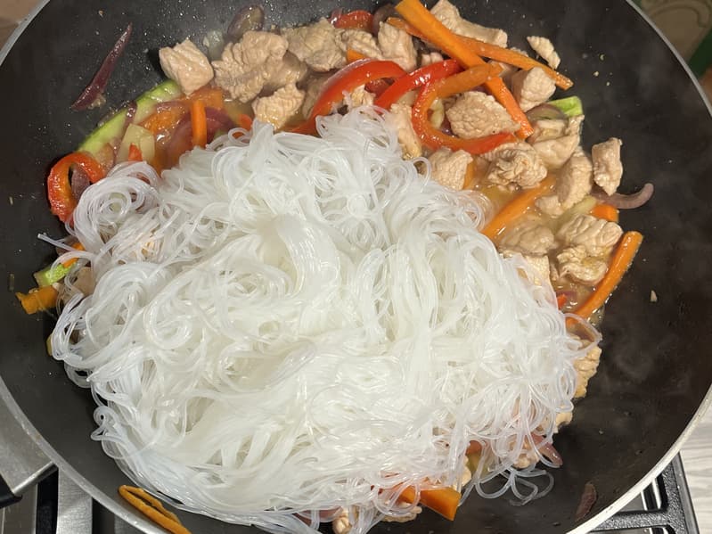 Первым тестом мы выбрали приготовление «стеклянной» лапши в большой вок-сковороде.