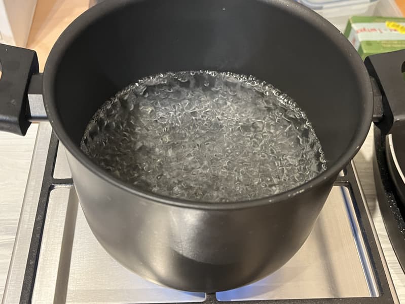 1 литр воды температурой 20 °C в кастрюле с тонкими стенками и закрытой крышкой на большой конфорке закипает за 6 минут 10 секунд.