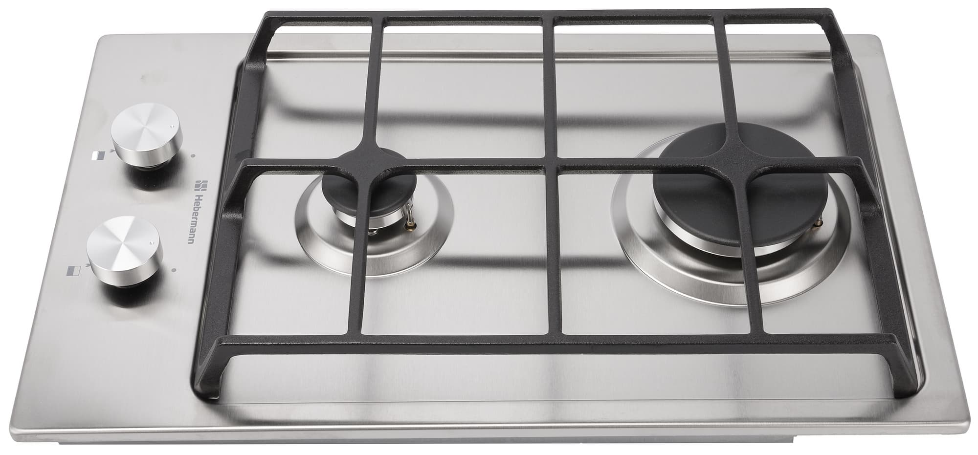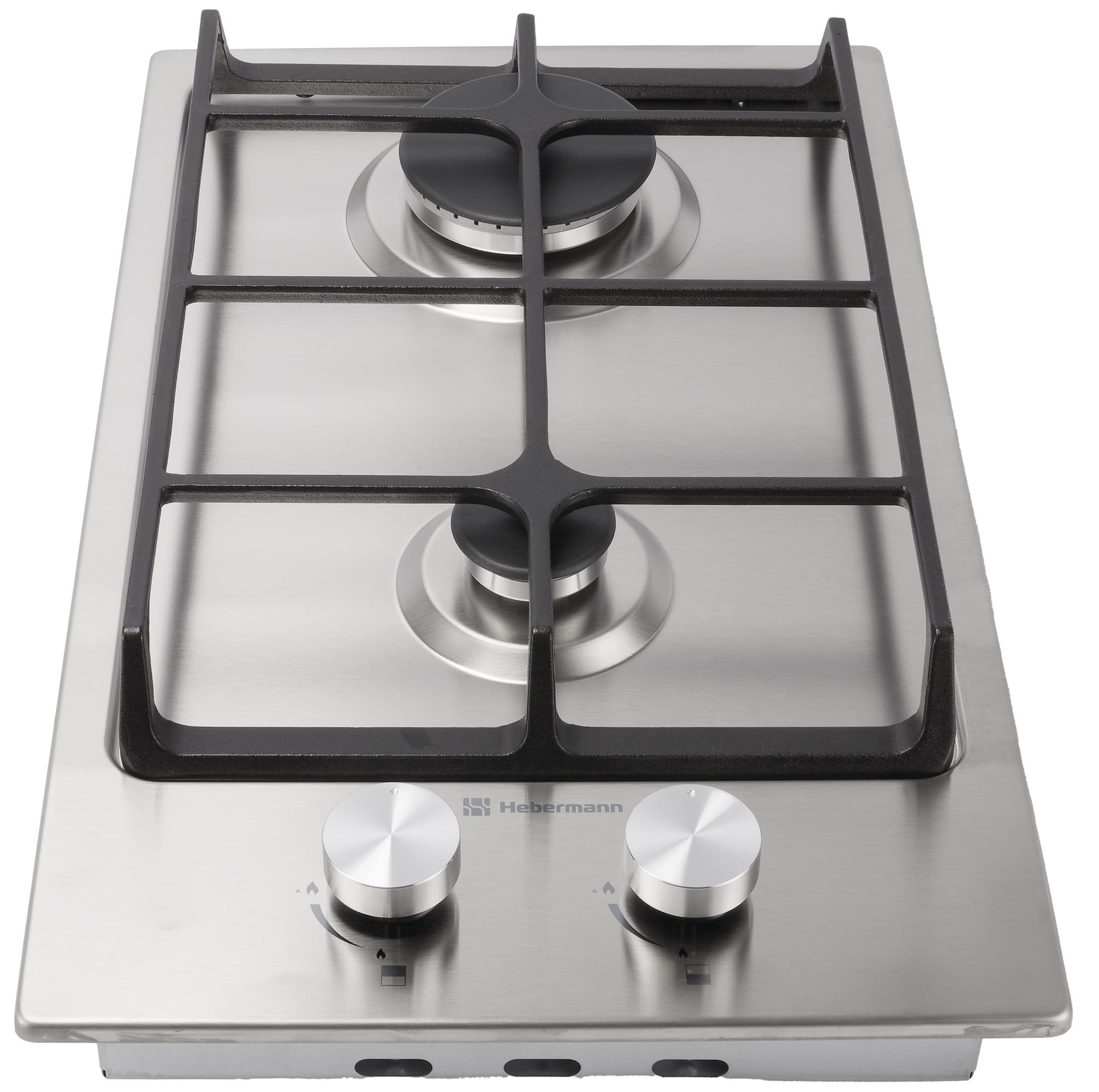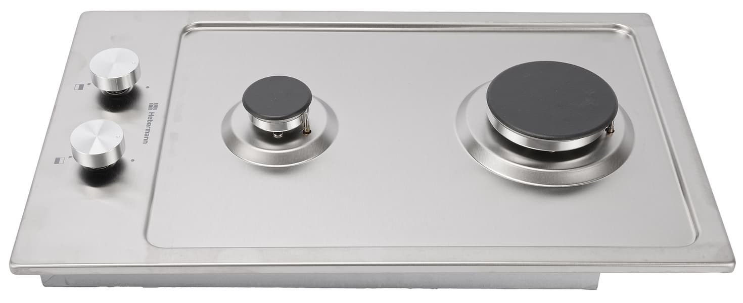Hebermann HBGS 302.1 X — бюджетная встраиваемая газовая варочная поверхность, предназначенная для работы с магистральным и баллонным газом. Устройство оснащено двумя конфорками, механическими круглыми регуляторами, автоматическим поджигом и газ-контролем.