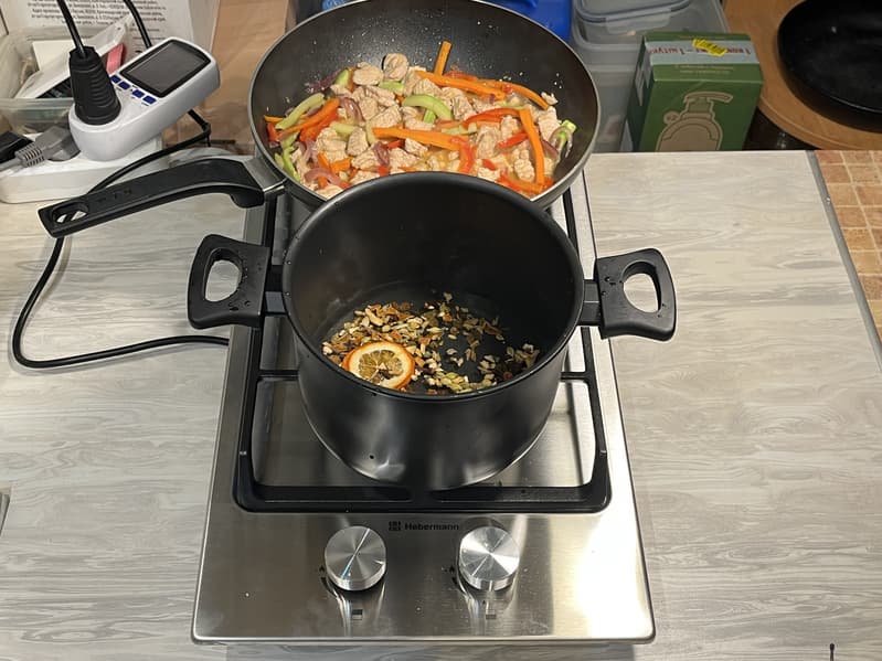 Это оказалось приемлемо, но не вполне удобно. Благо во время тестирования в таком сочетании кастрюля занимала свое место всего около 15 минут.