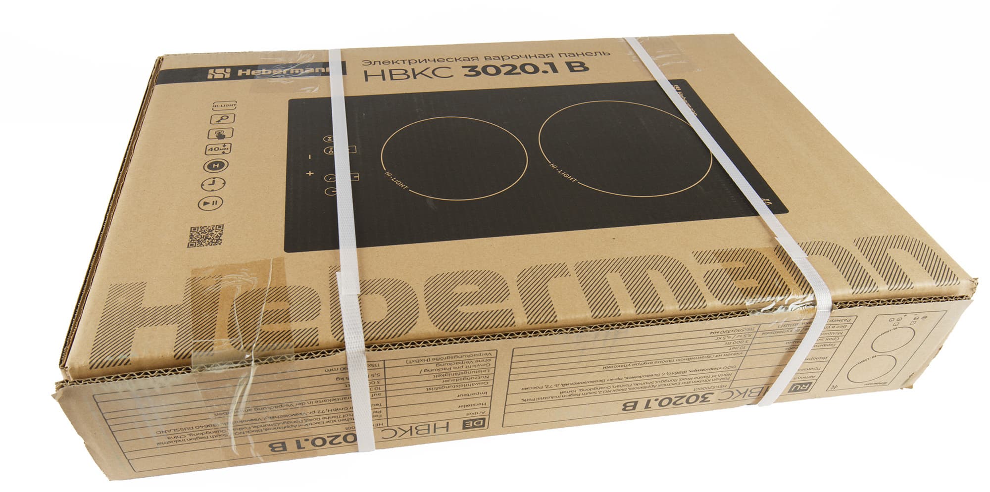 Наша варочная панель приехала в плоской коробке из гофрированного картона. Такую коробку удобно перевозить и нести — она поместится даже подмышкой, а при хранении не займет много места. К сожалению, никакое приспособление для переноски не предусмотрено.