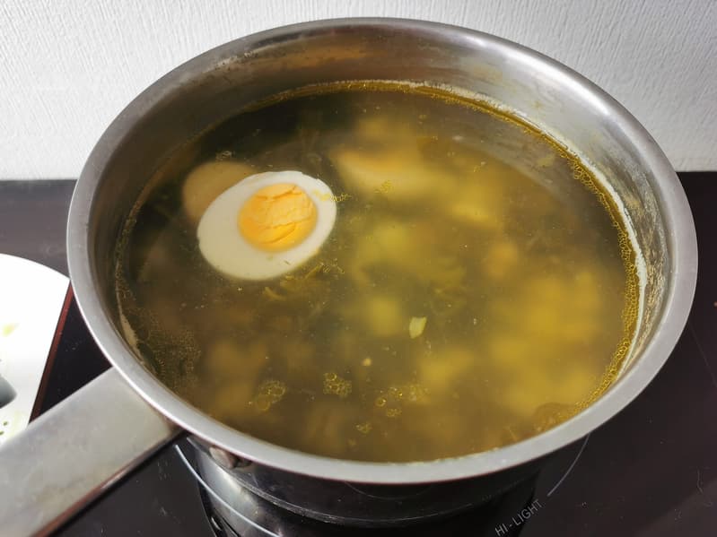 Когда до конца приготовления оставалось 15 минут, мы установили таймер, добавили в суп яйца и ушли отдыхать.