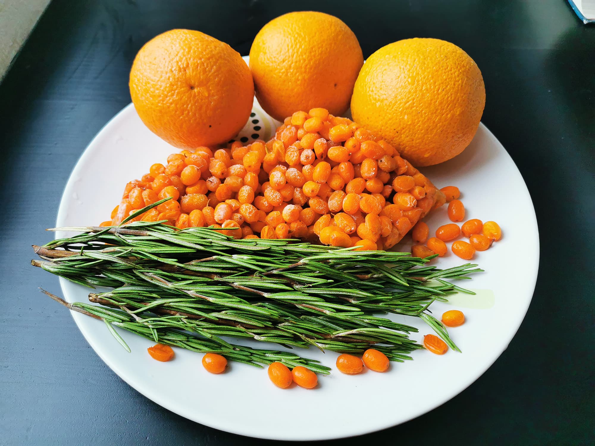 Компот из облепихи, апельсина и розмарина