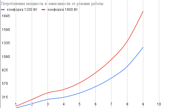 - конфорка в 1200 Вт потребляет около 1220 Вт