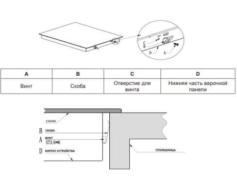 Забор и отвод воздуха из вентиляционных отверстий плиты должен быть доступен. Подключение должно производиться в соответствии с электрической схемой, обязательно следует присоединить провод заземления.