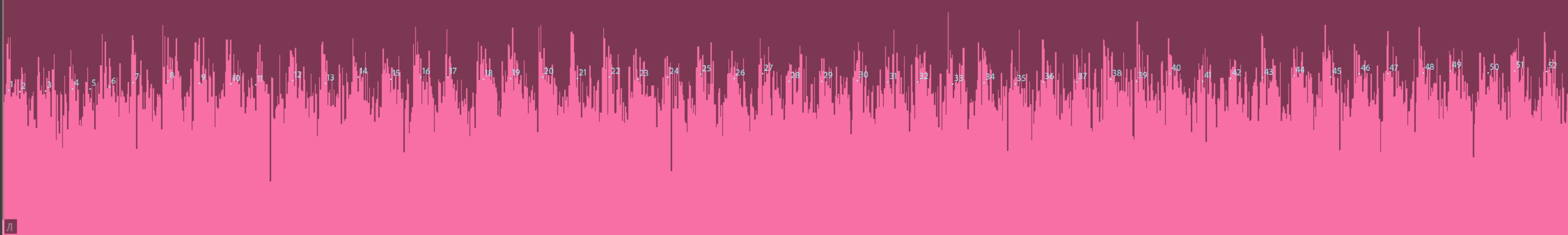 Но для начала измерим скорость вращения шпинделя другой УШМ. Которая не дает явных поводов сомневаться в верности ее паспортных значений. Она не только «фирменная», но и трехскоростная, что позволит наглядно убедиться в действенности метода (или в бесполезности). Вот какая у нас получилась аудиозапись на самой низкой скорости. Пики видны отчетливо, остается их подсчитать.