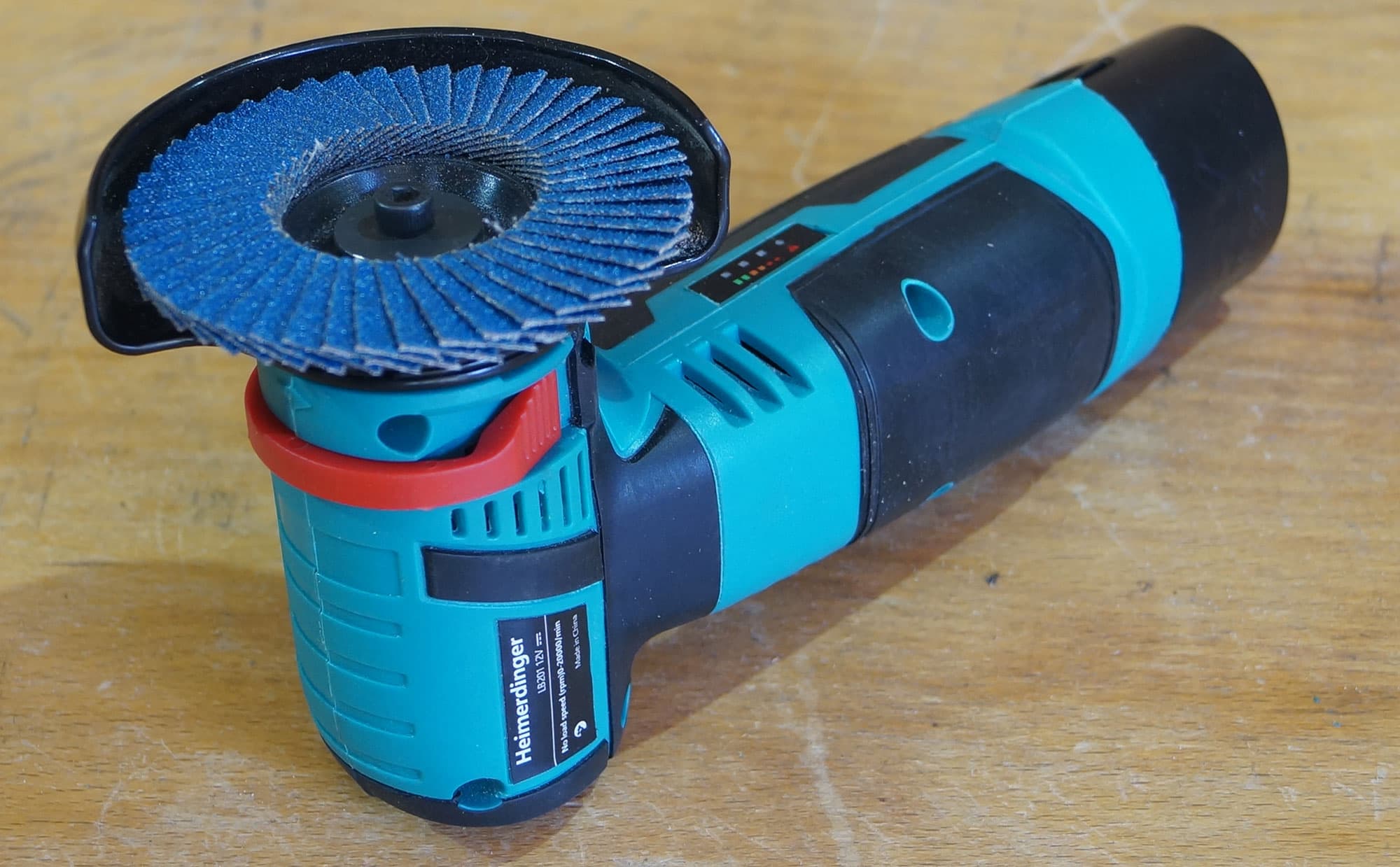 Требование к мощности двигателя при шлифовании значительно увеличивается, поскольку площадь контакта шлифовальной насадки с материалом выше, чем у отрезного круга. Тем не менее, тестирование автономности разумнее всего производить именно в таком режиме. Не станешь же 10-15 минут резать металл? К тому же, наша мини-болгарка совершенно не умеет его резать.