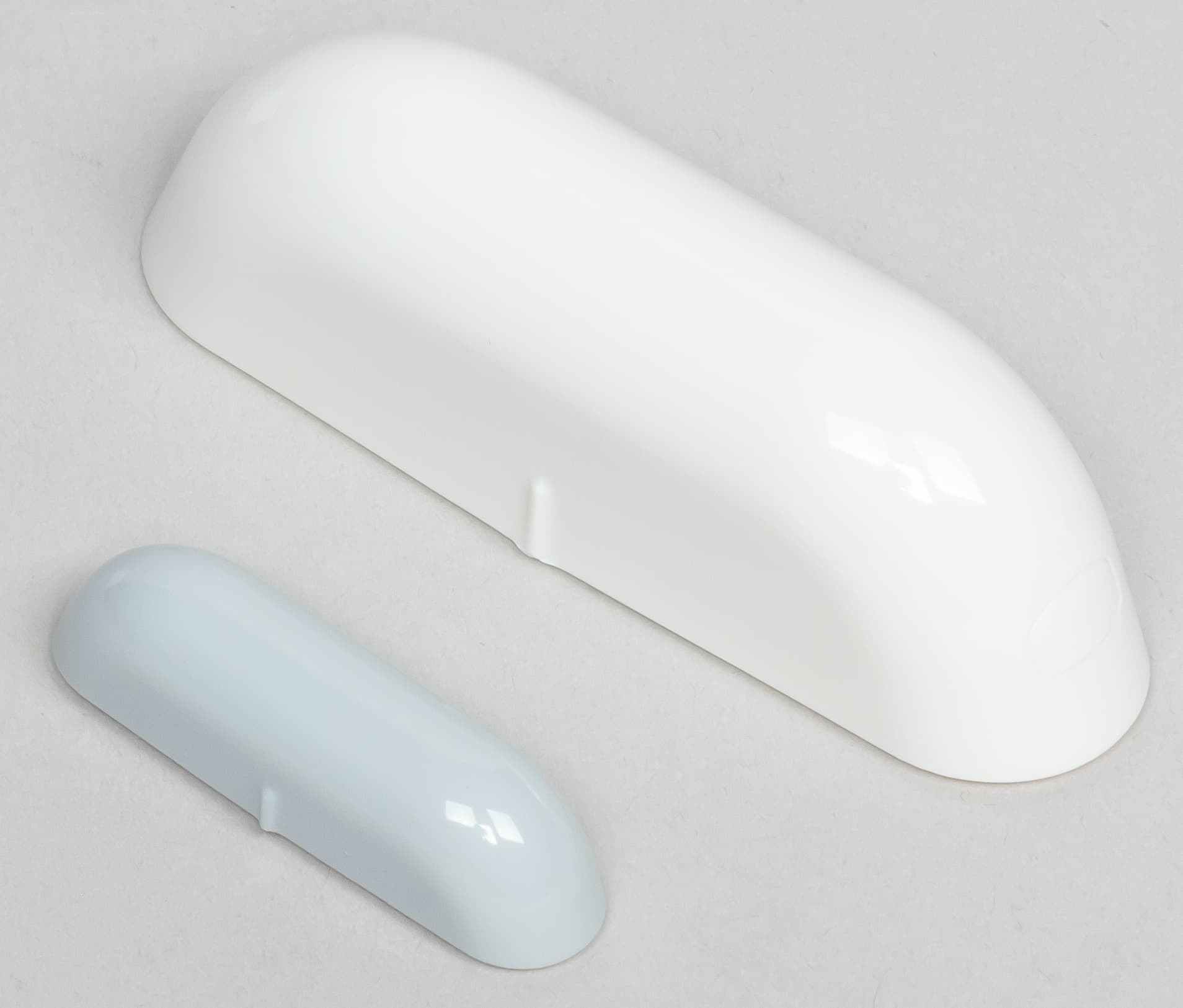 Корпус выполнен в форме шара. Датчик свободно вращается в крестообразном креплении, что позволяет легко и достаточно точно настраивать зону срабатывания. В «окошке» на передней панели размещен синий светодиодный индикатор.