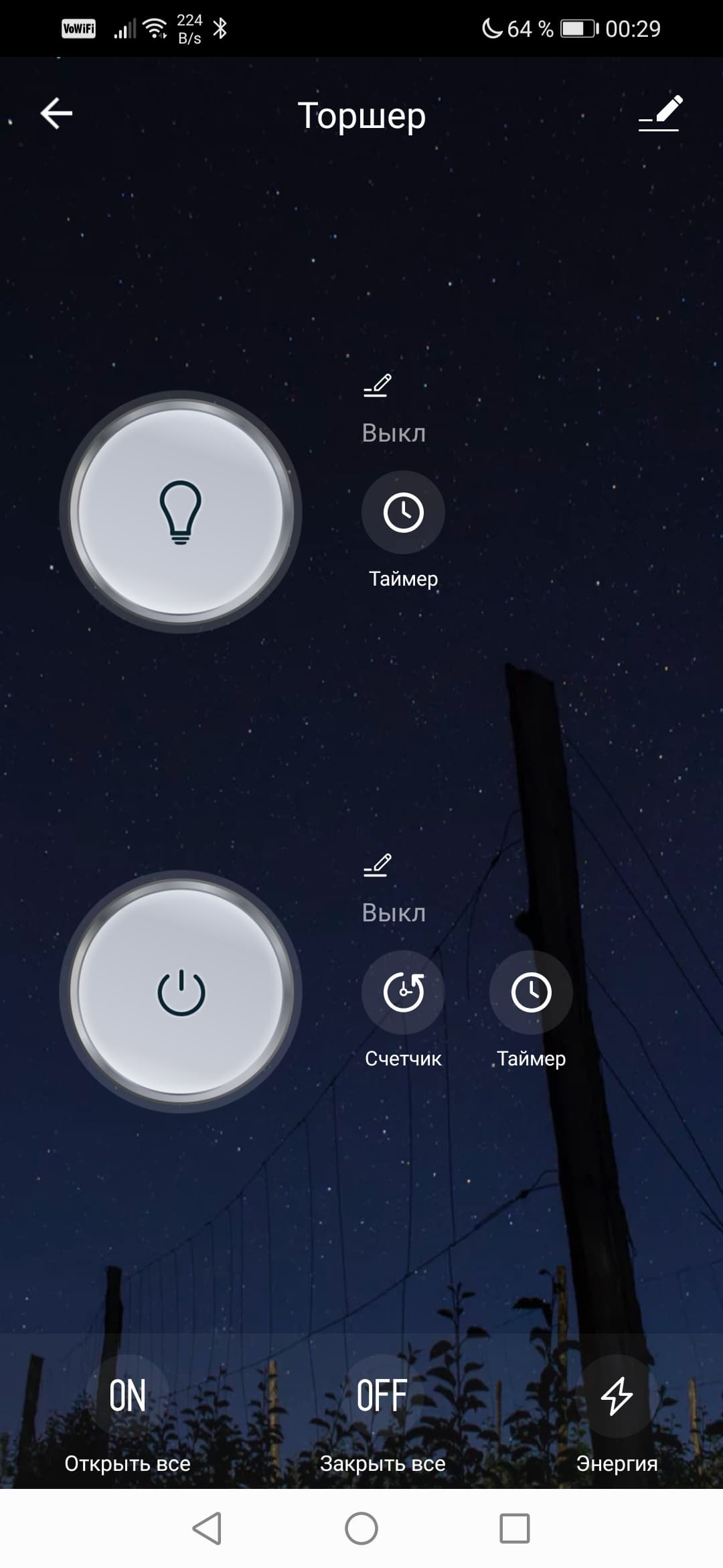 Прочие настройки, которые можно найти на их страничках в приложении, не относятся к функциям самих устройств. Различные таймеры, счетчики энергии или сценарии. Они используются во время эксплуатации приборов, а значит, будут рассмотрены в следующей главе.
