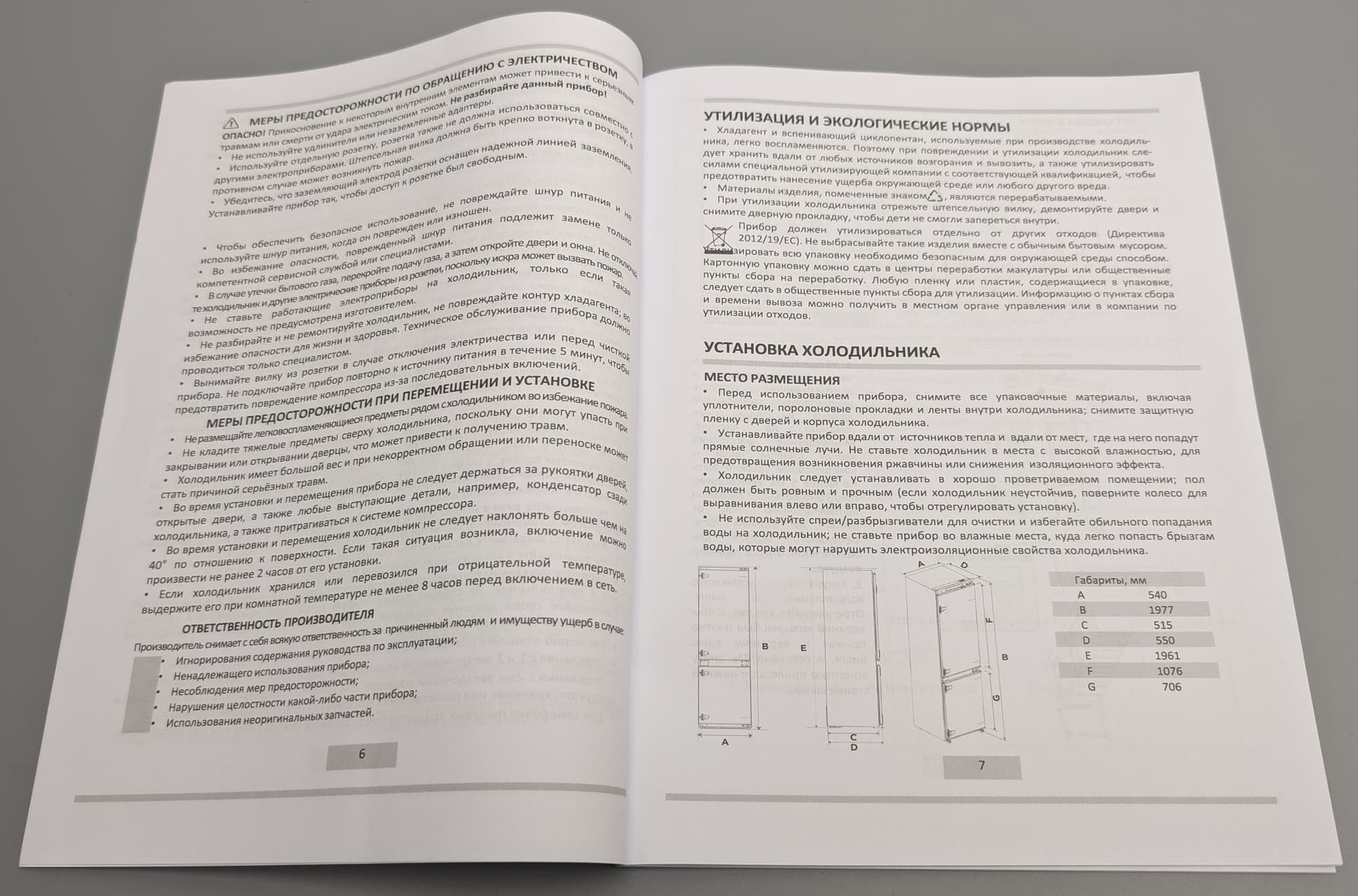 Инструкция кратко рассказывает о подготовке устройства к работе, настройке и эксплуатации холодильника. В ней содержится множество схем и рисунков, иллюстрирующих конструкцию и использование прибора. Брошюра одновременно является и сервисной книжкой.