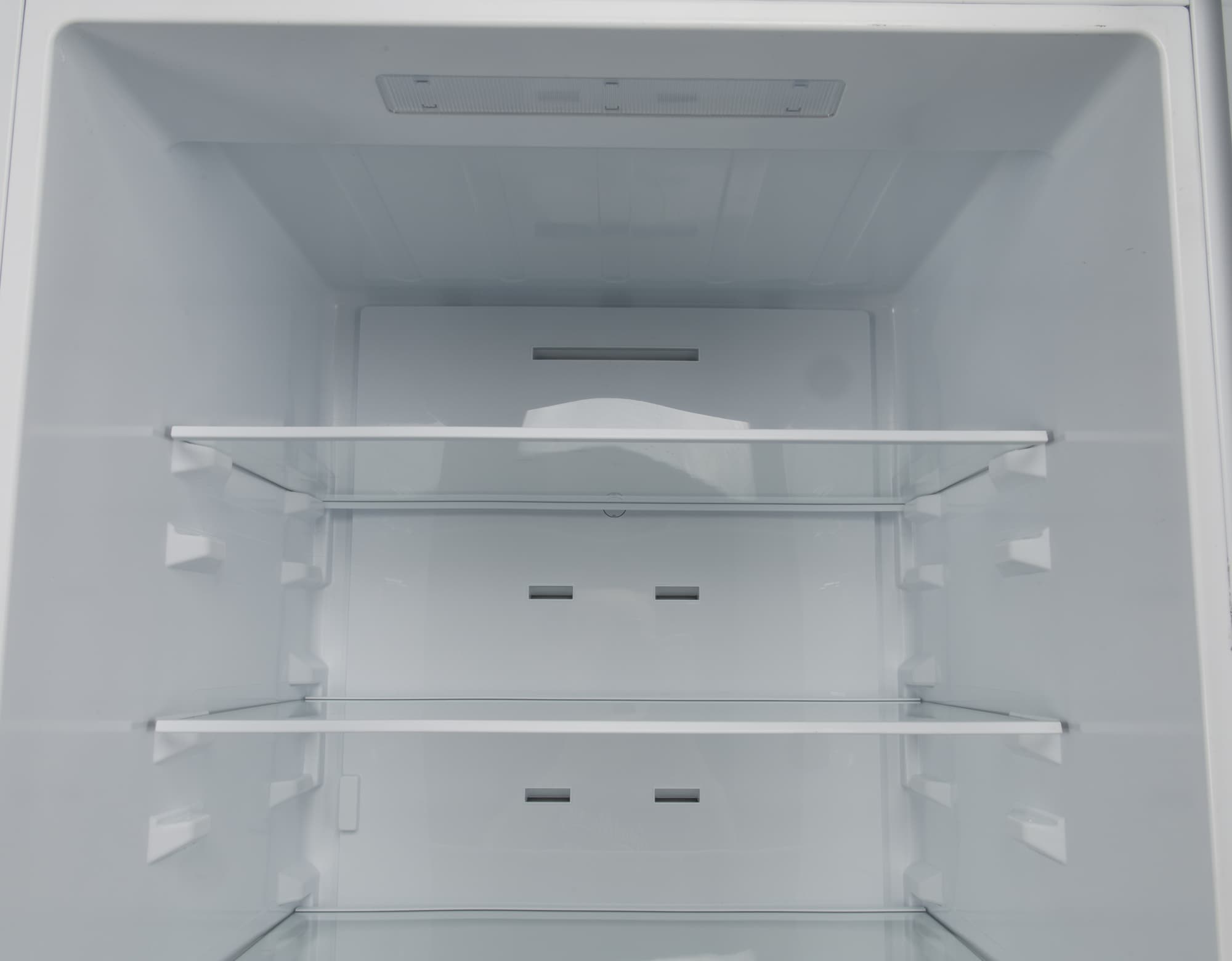 Четыре полки холодильной камеры сделаны из закаленного стекла, способного выдерживать, по словам производителя, до 15 кг, и окантованы пластиком. Конструкция стенок допускает регулировку расположения: для каждой из полок предусмотрено два варианта.