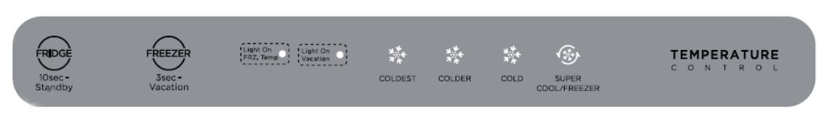 Работу функций суперохлаждения и суперзаморозки можно прервать до истечения заданного времени нажатием на сенсоры «Fridge» и «Freezer» соответственно.