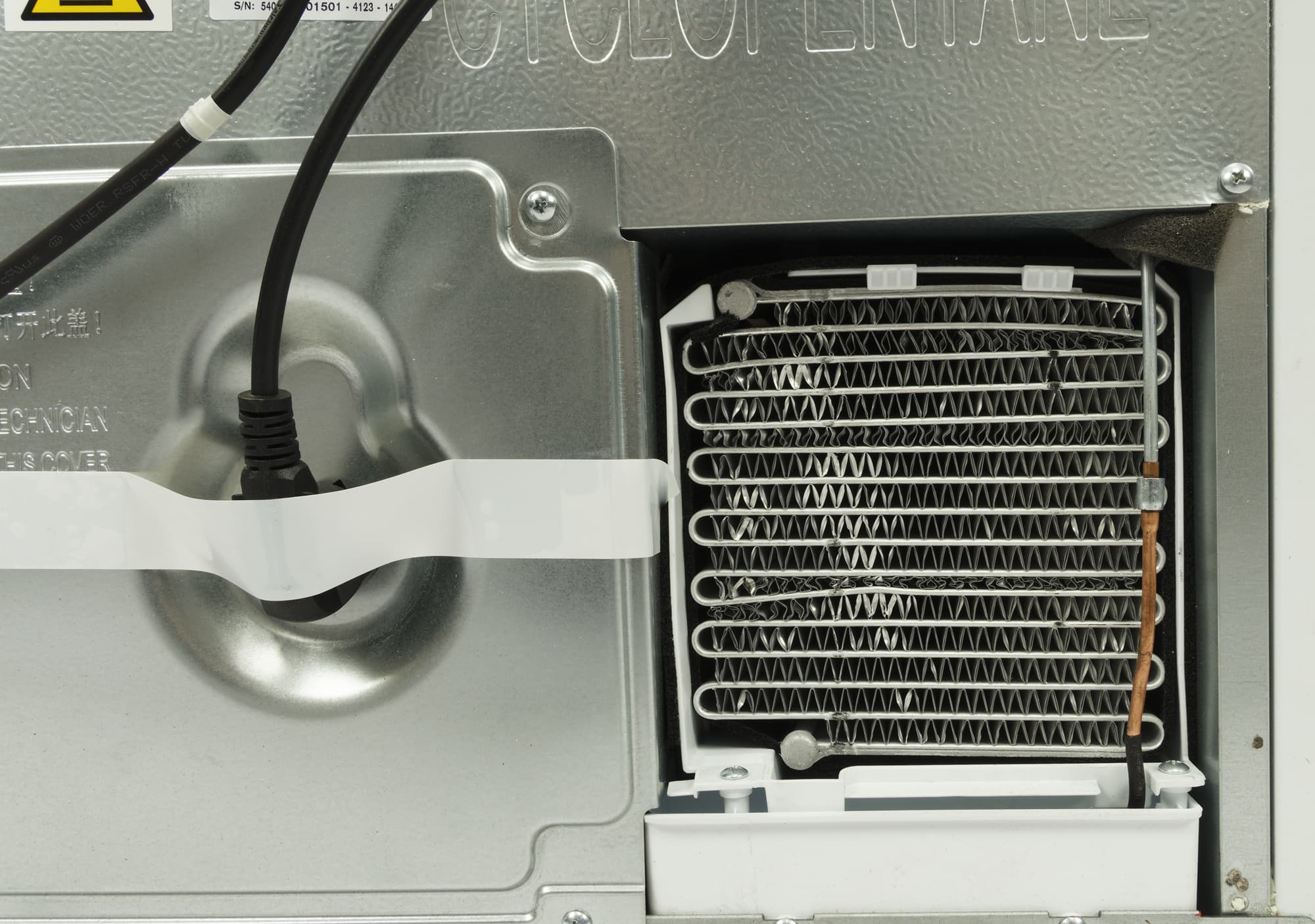 В нижней части задней панели из неокрашенного алюминия расположена ниша холодильного агрегата. В конструкции этой модели использован инверторный компрессор GMCC-Toshiba, обеспечивающий стабильность температуры, низкий уровень шума (35 дБ) и высокую энергоэффективность (класс А++).