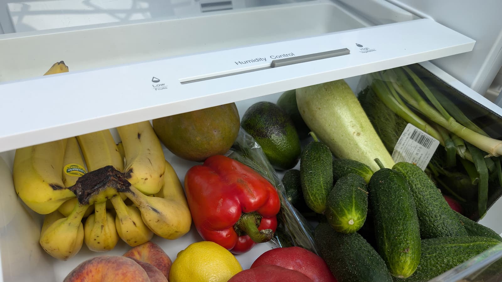 Емкость зоны свежести достаточна для того, чтобы хранить в ней большой объем свежих овощей и фруктов. Слайдер, управляющий влажностью, позволяет установить в ней правильный микроклимат. К сожалению, в ящике нет каких-либо разделителей и перегородок — пользователь должен выбрать оптимальное положение заслонки для всего ящика.