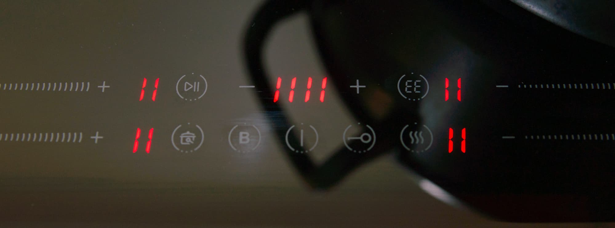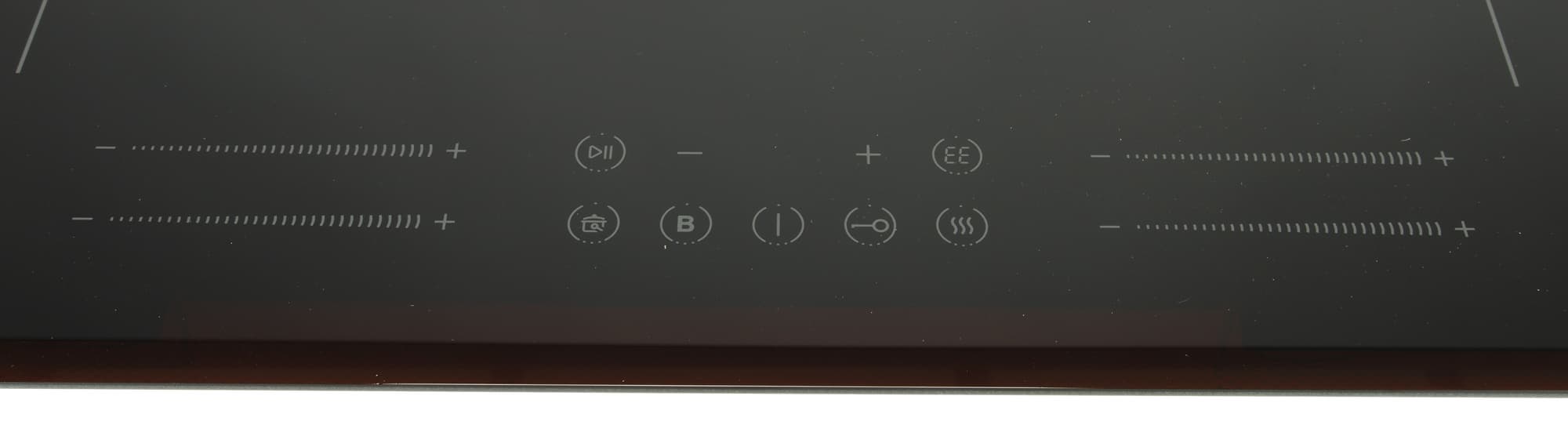 Сенсорная панель управления History HI 6440 BBK состоит из 7 кнопок и 4 слайдеров — для каждой зоны нагрева отдельно. Возле каждого слайдера находится индикатор, отображающий действующую мощность. По завершении приготовления вместо цифры появляется буква Н, как индикатор остаточного тепла. Как только стекло в зоне нагрева остынет, индикатор погаснет.