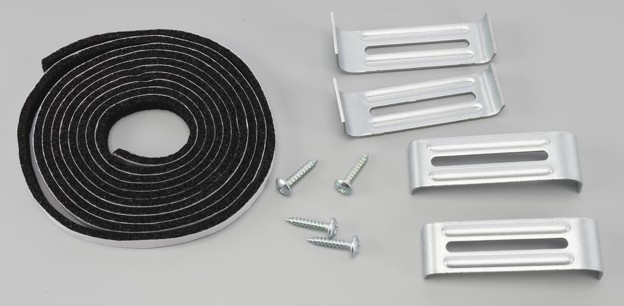 Вскрыв коробку и избавившись от пенопластовых «подушек безопасности», мы обнаружили саму панель с электрическим шнуром без вилки, демпферную ленту, набор металлических скоб и руководство по эксплуатации.