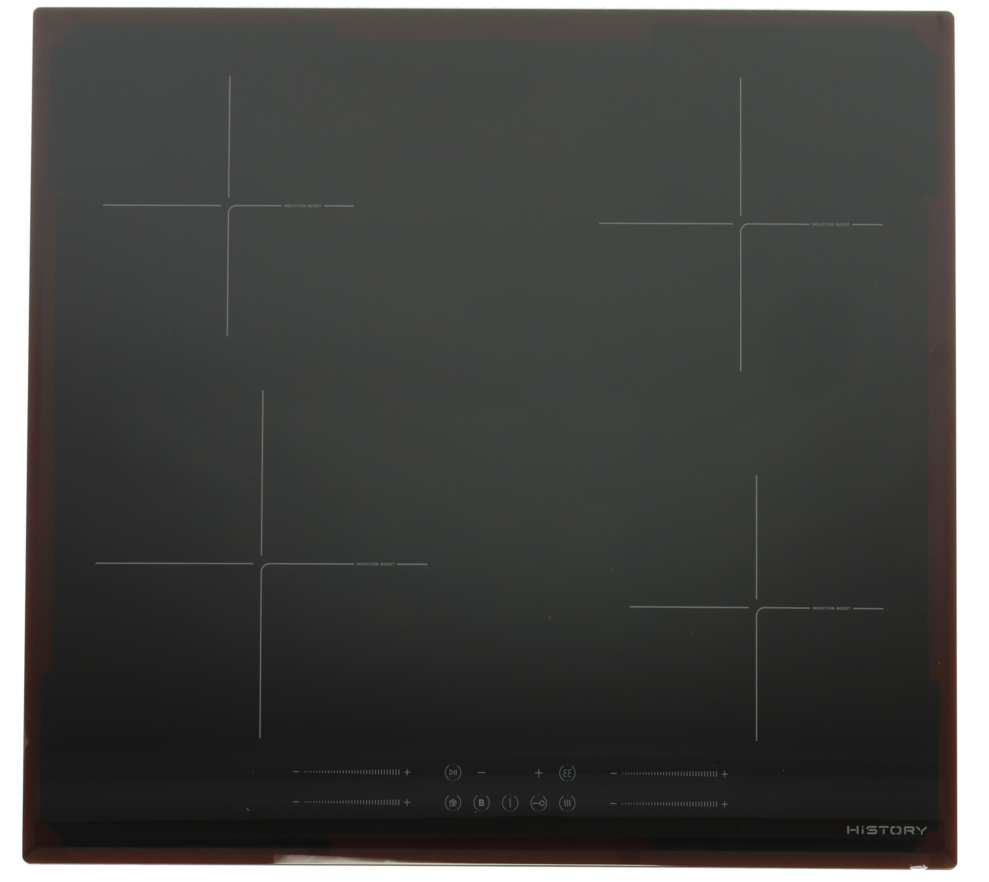 Полноразмерная варочная панель индукционного типа History HI 6440 BBK оборудована четырьмя зонами нагрева, имеет индивидуальное для каждой конфорки сенсорное управление с 9-ступенчатой шкалой выбора мощности и возможностью включения режима Boost.
