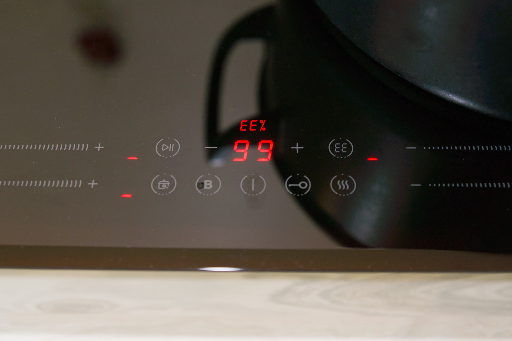 Третья функция, Качество посуды, обозначенная на панели управления буквами ЕЕ, способна показать степень эффективности потребления электроэнергии варочной поверхностью в зависимости от качества и размера посуды. Опция действительно полезная и, надо признать, ранее нам не встречавшаяся.