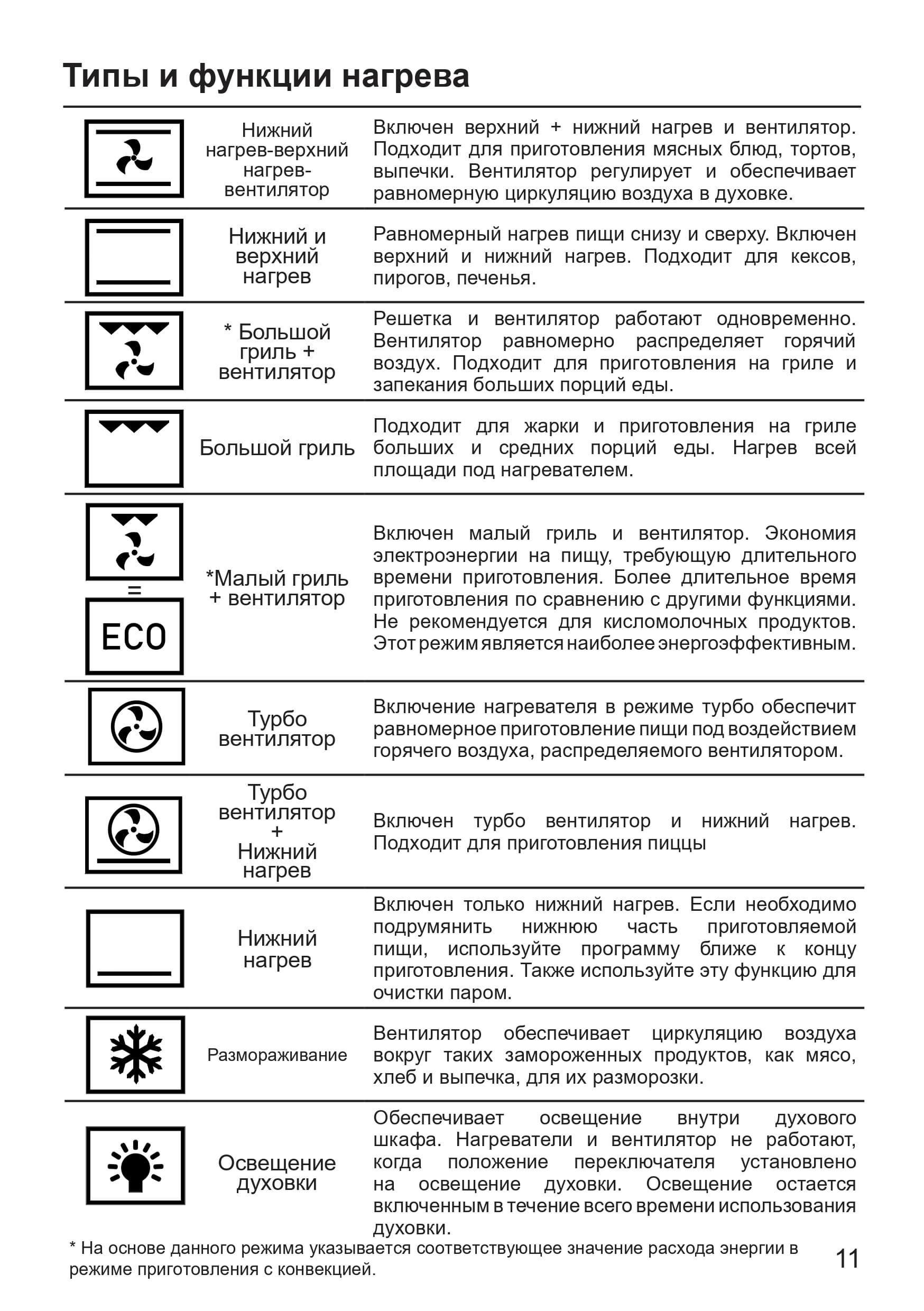 Основная инструкция содержит максимум необходимой информации, касающейся повседневного использования. Главы документа посвящены устройству духовки, детальному описанию нюансов управления и режимов приготовления, мерам безопасности, а также правилам по уходу. Последние две страницы отведены под гарантийный талон.
