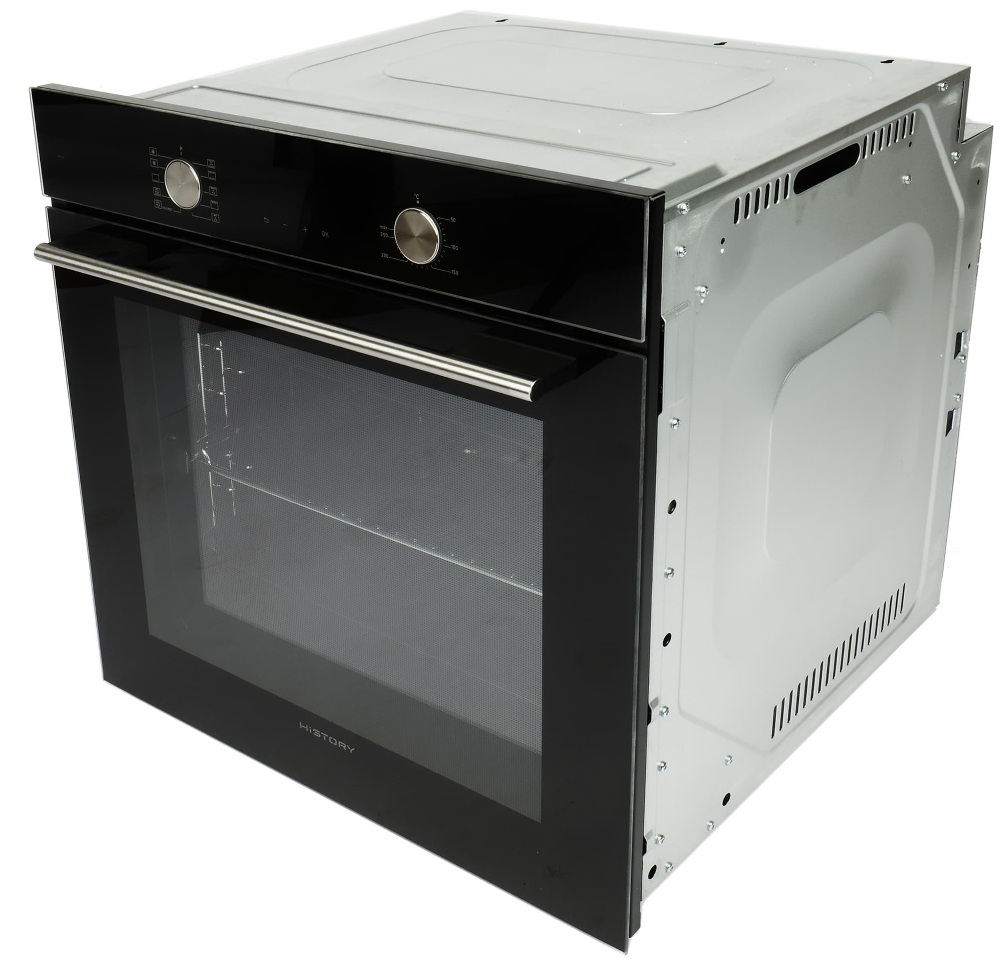 На российском рынке бренд History появился недавно, в 2021 году, и на сегодняшний день известно о нем совсем немного. Всё, что нам удалось выяснить к моменту написания обзора — крупная бытовая техника компании собирается в Турции, а еще в Китае и на Тайланде. Турецкой сборки и наш сегодняшний герой — электрический духовой шкаф History OE7710C.FBK.