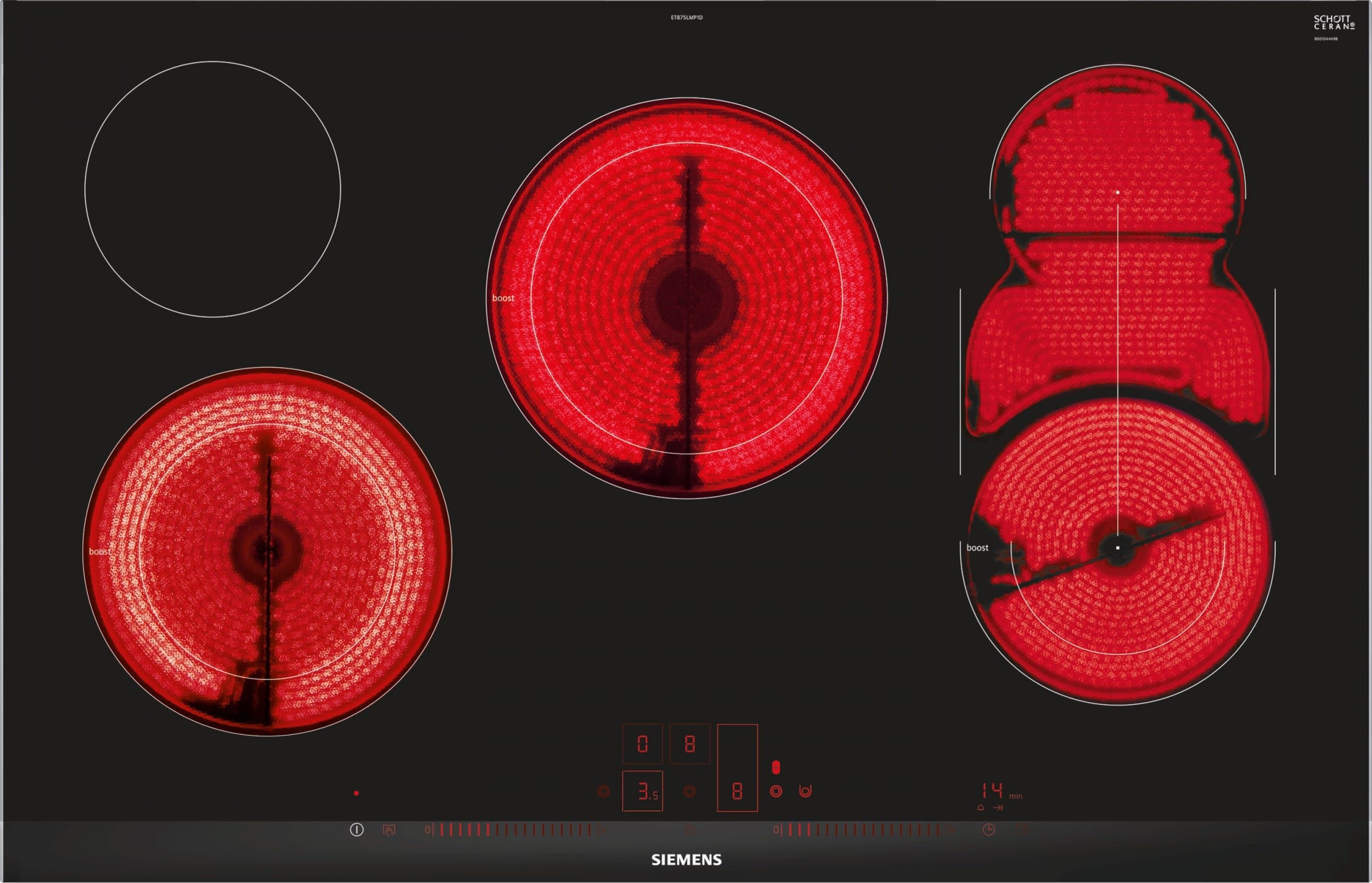 Стеклокерамическая панель Siemens ET875LMP1D с расширяемой зоной нагрева позволяет использовать посуду разной формы