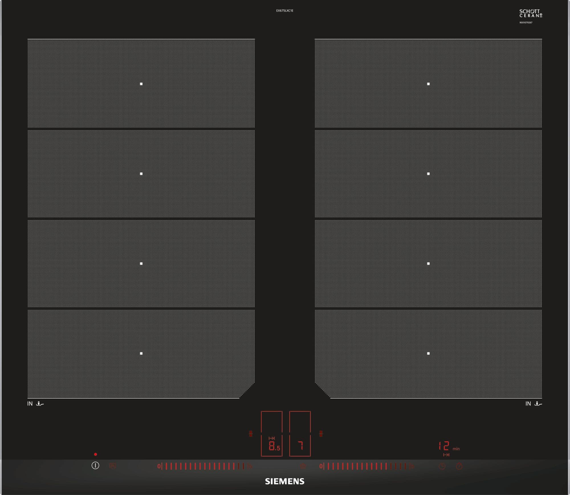Панель Siemens EX675LXC1E позволит ставить посуду в любое место зоны приготовления