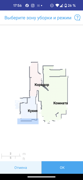 Свежесозданную карту приложение позволяет отредактировать: установить по своему вкусу границы помещений, объединяя, разъединяя или переименовывая комнаты. Здесь же можно выделить запретные для уборки зоны с помощью виртуальной стены или прямоугольной разметки. Приложение позволяет также пометить высокие пороги с помощью инструмента «ослабить залезание».