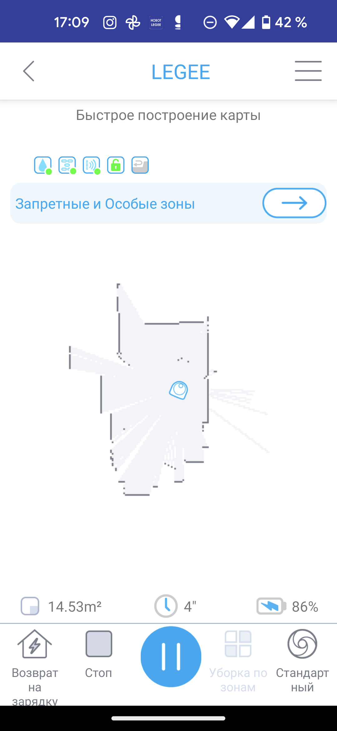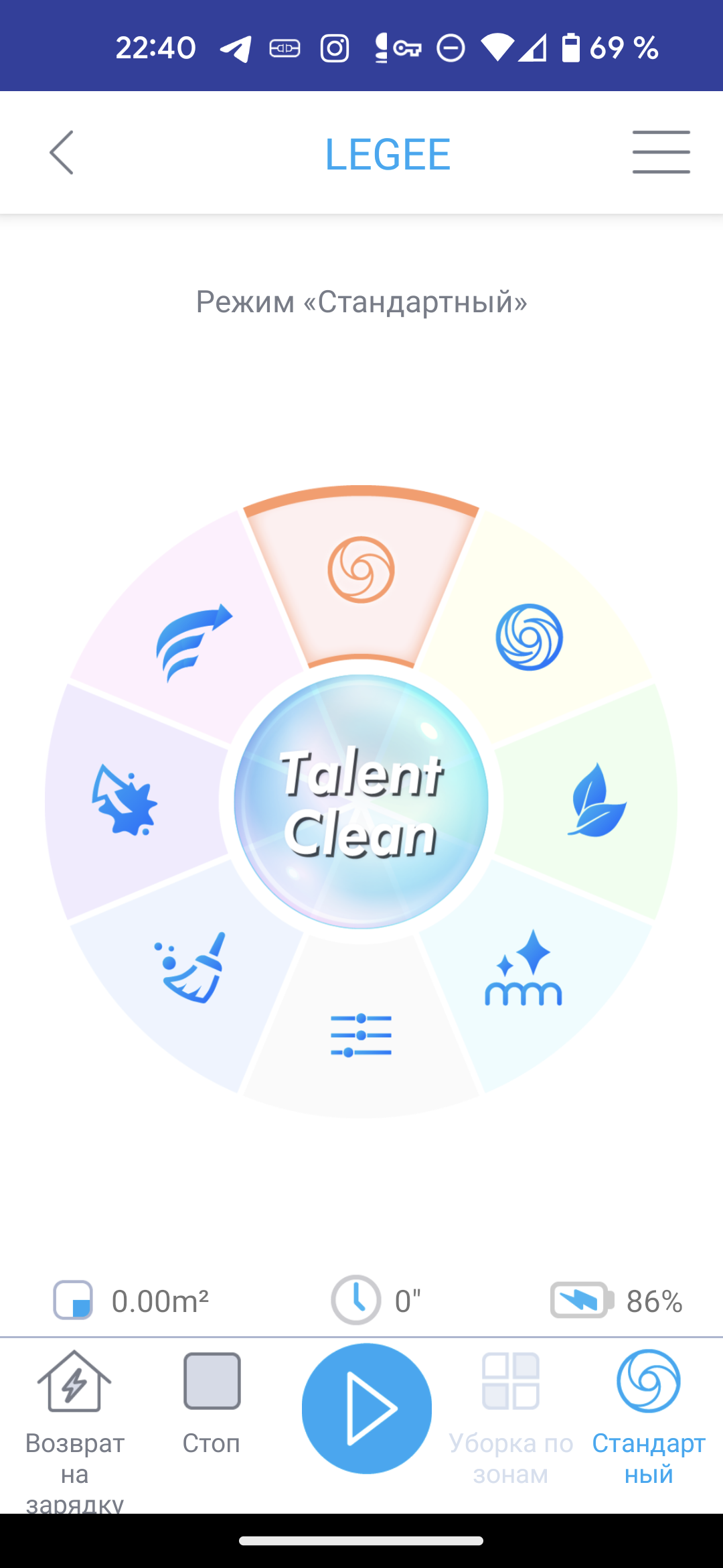 У Legee D8, напомним, целых восемь режимов уборки: один пользовательский и семь предустановленных производителем. Приложение позволяет переключаться между ними и настраивать собственный алгоритм действий.