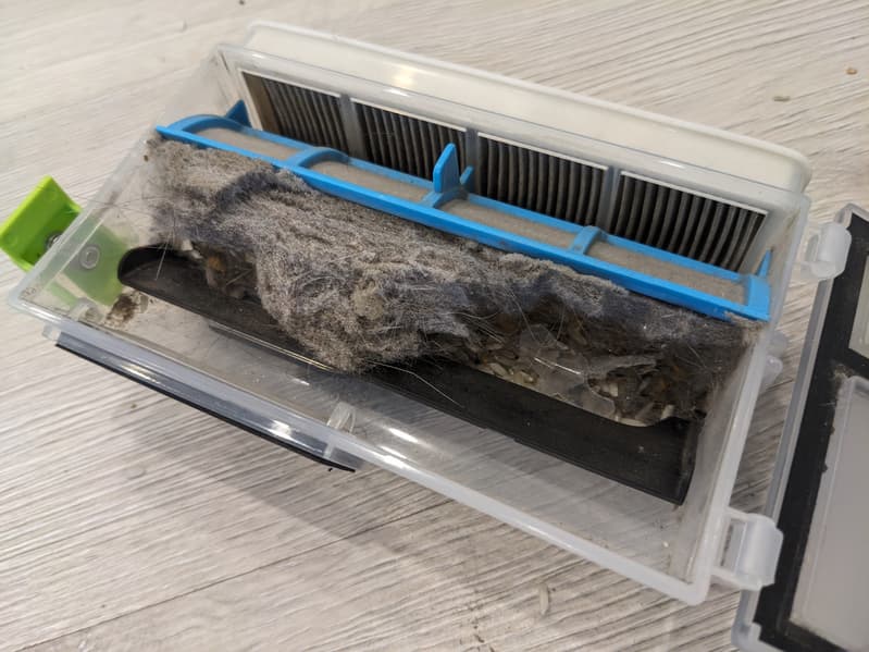Первый этап занял у нас 8 минут и 48 секунд. За это время прибор собрал 92,6% тестового мусора.