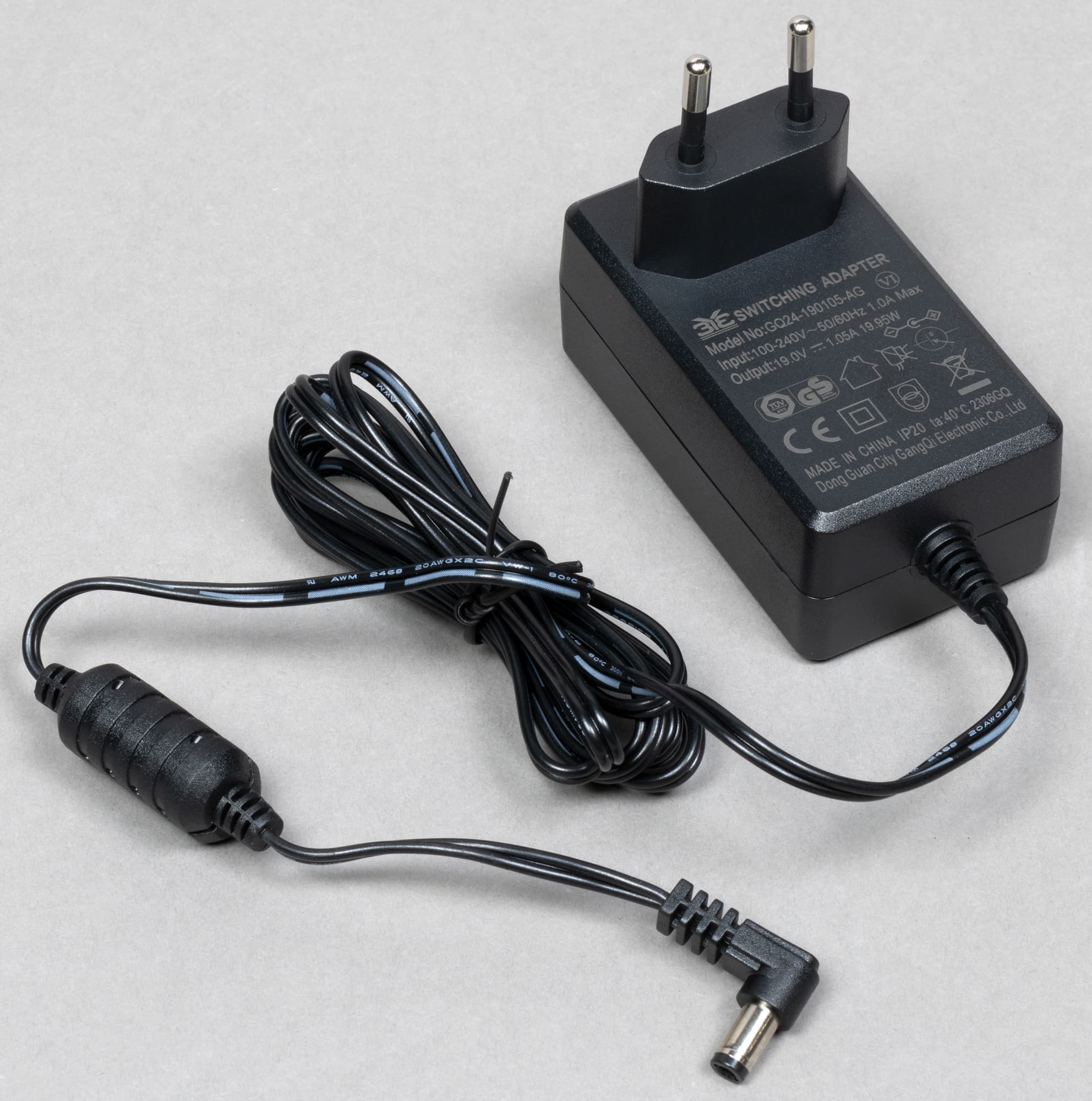 Входящий в комплект адаптер рассчитан на 19 В постоянного тока силой 1 А.