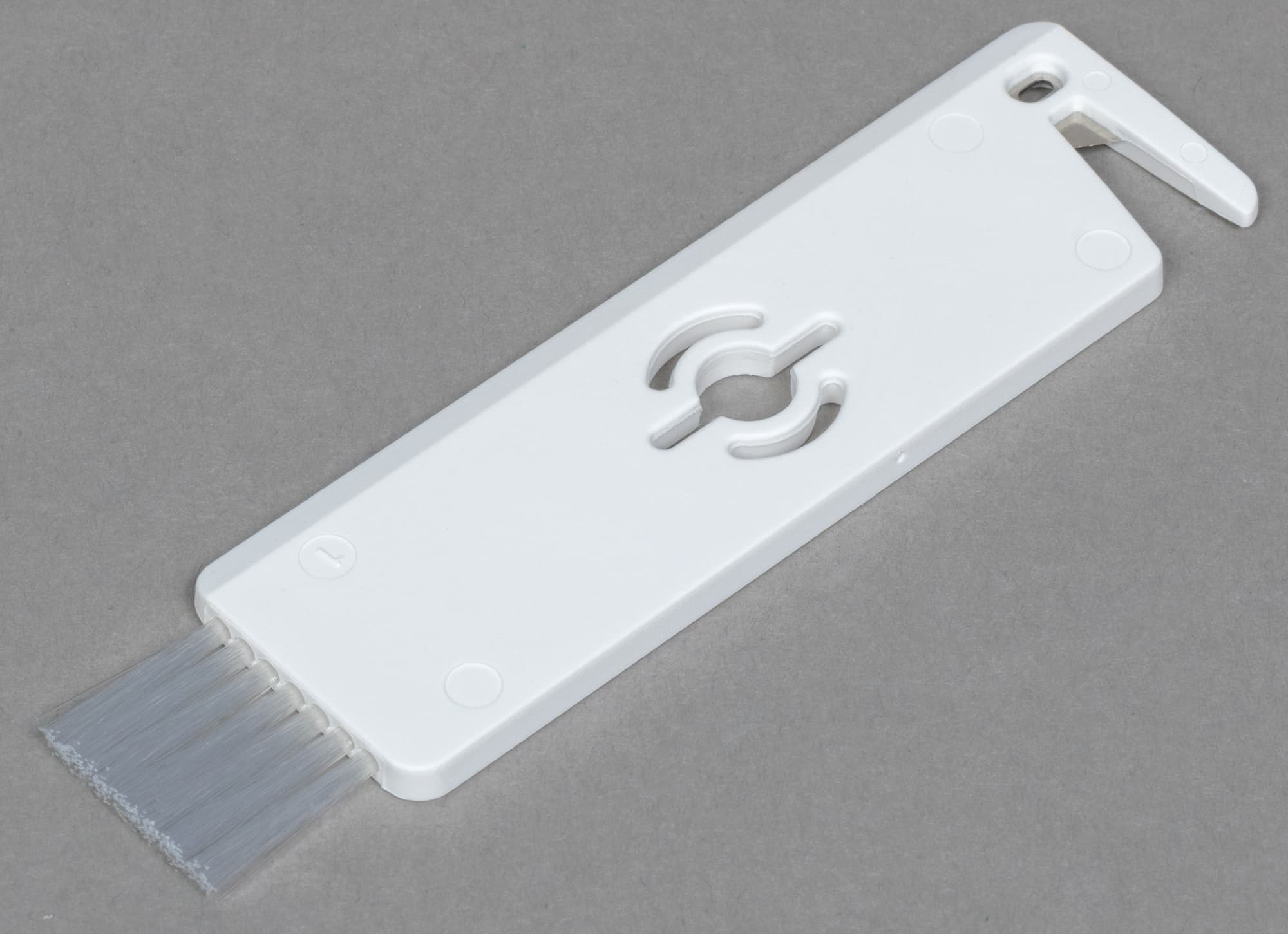 Оно несложное и состоит из щетки и лезвия, которым удобно срезать с роторов намотавшиеся на них волосы и нитки.