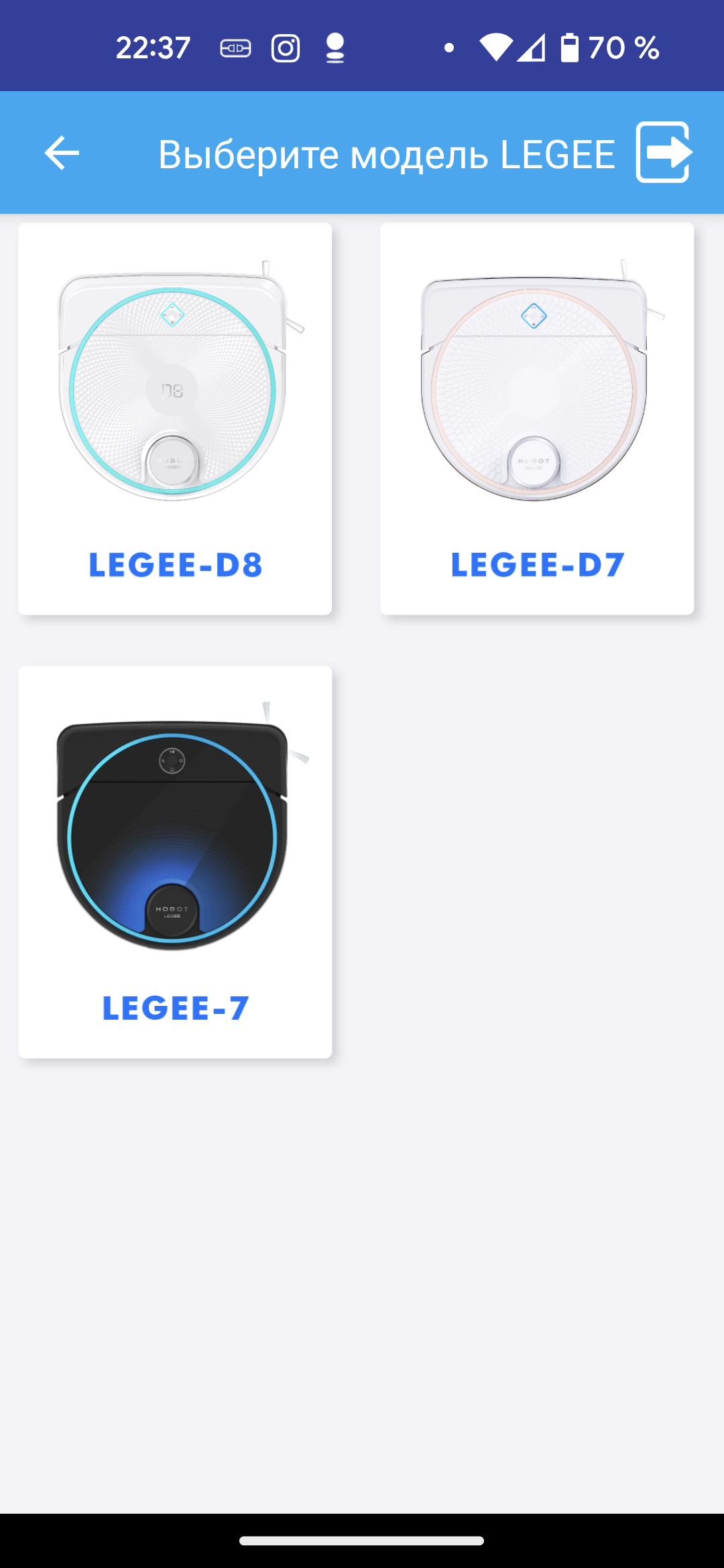 После регистрации следует вручную выбрать марку и модель пылесоса.