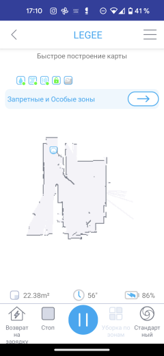 Для первого знакомства с новым помещением лучше всего воспользоваться функцией «быстрое создание карты». При таком запуске пылесос за несколько минут обходит квартиру, определяя ее границы, но не тратит время на тщательную уборку всех закоулков: ими можно заняться и позже, после редактирования карты.