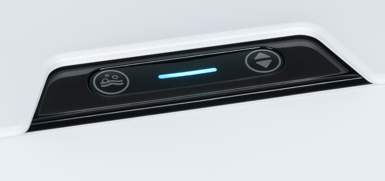 Панель управления станции самоочистки состоит из двух кнопок: первая включает сопряжение с роботом-пылесосом, вторая принудительно запускает стирку салфеток.