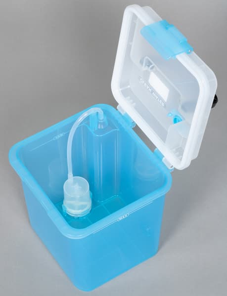 Для заполнения резервуара в комплекте робота есть пластиковый баллон с носиком, позволяющим залить в бак нужное количество воды, не пролив ни капли.