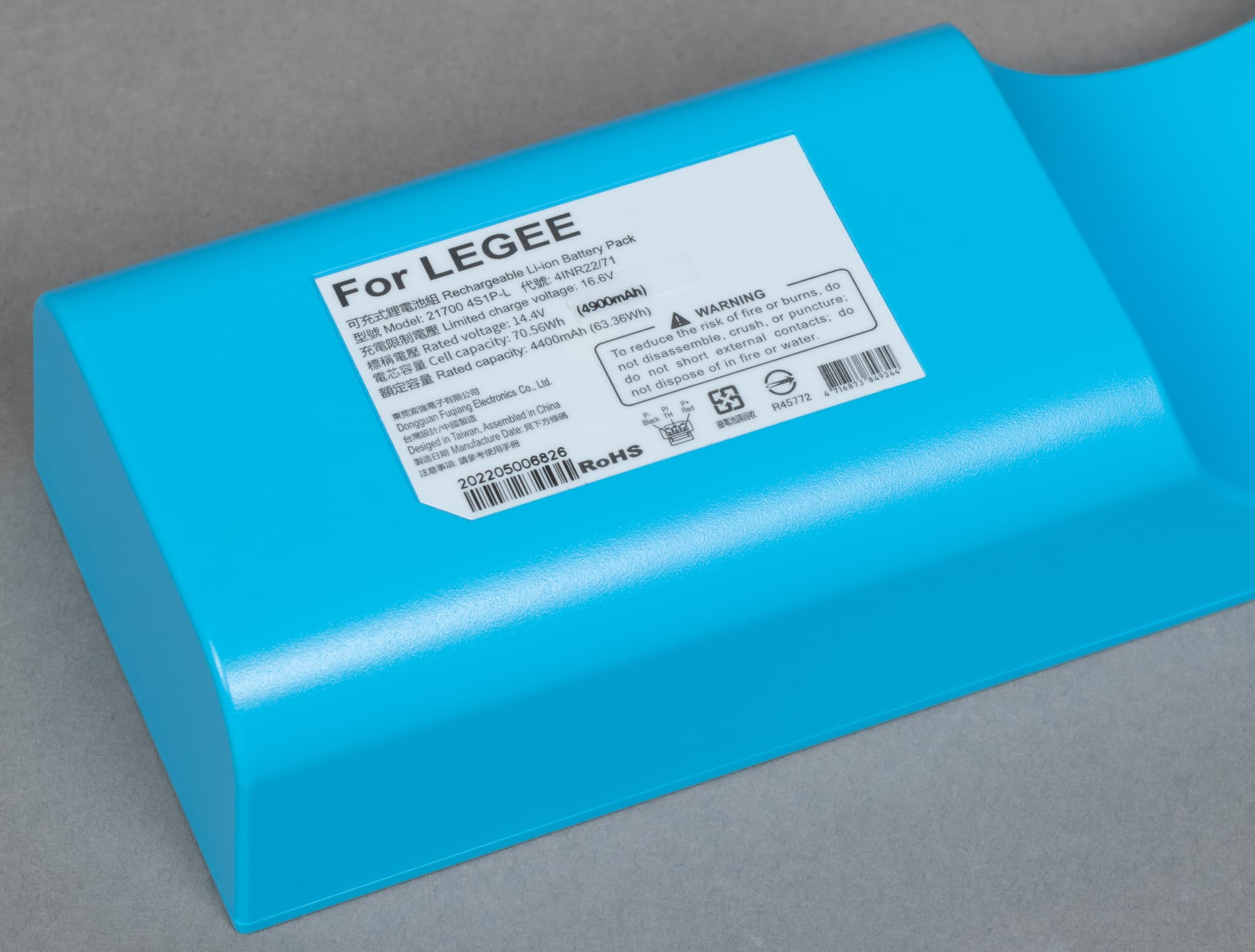 Согласно маркировке, номинальная емкость батареи составляет 4900 мА·ч (70,56 Вт·ч), а фактическая — 4400 мА·ч (63,36 Вт·ч). Элемент рассчитан на напряжение 16,6 В.