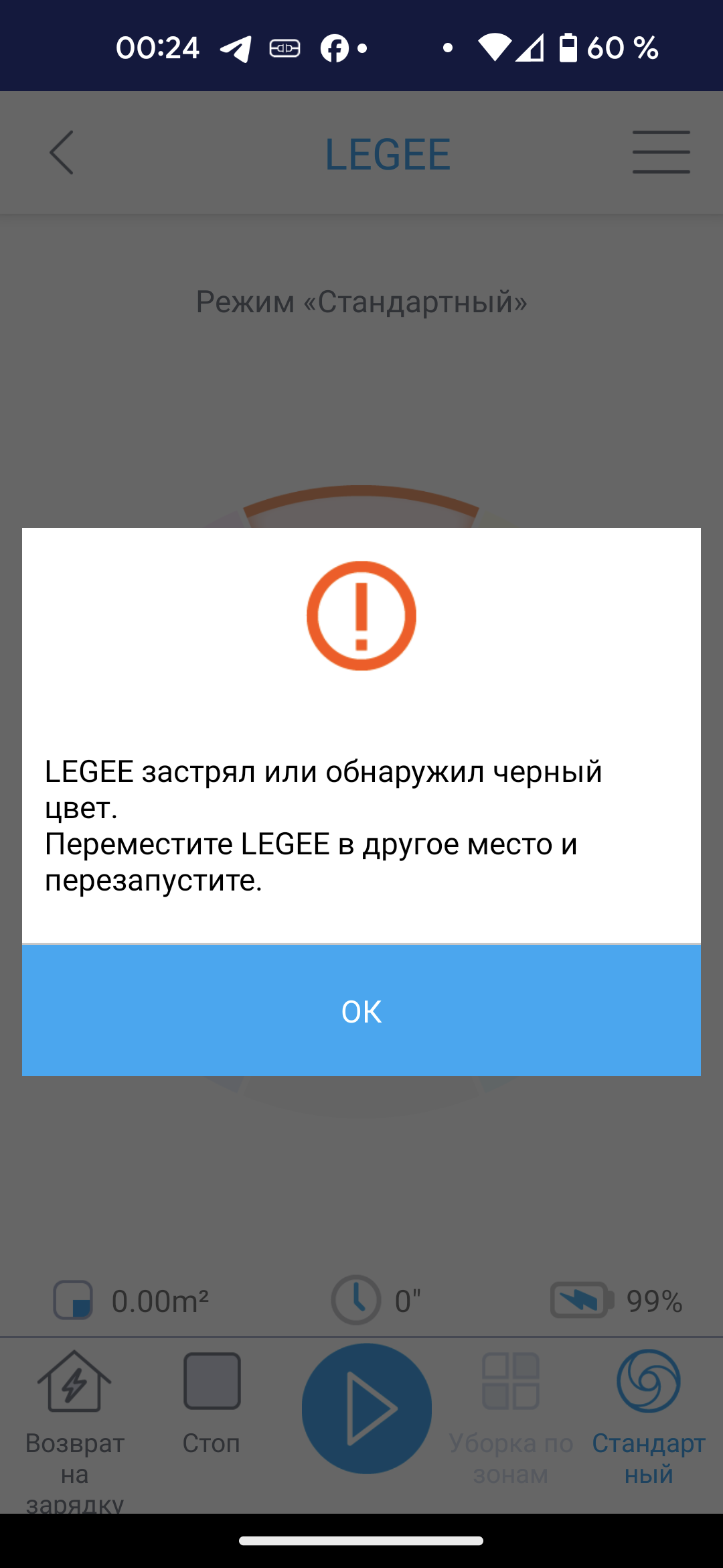 В этот раз нас встретил не очень приятный сюрприз: при попытке отправить пылесос в первое путешествие по черному ковролину, робот сообщил об ошибке датчиков поверхности.