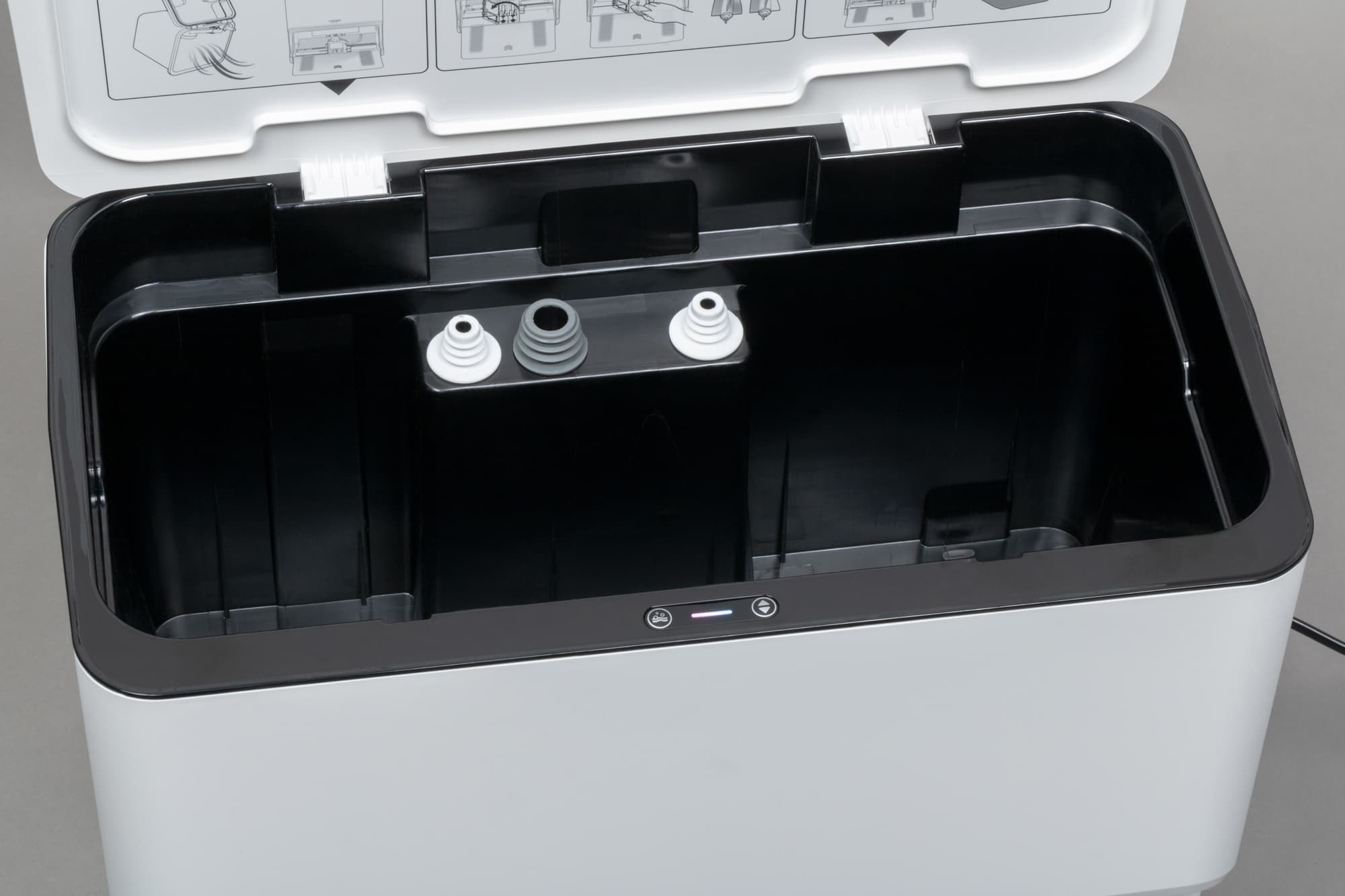 Для доступа к контейнеру для мусора следует откинуть верхнюю панель.