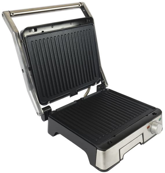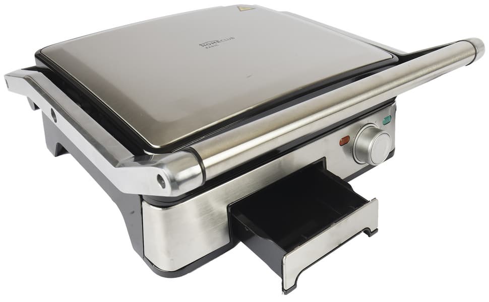 Прижимной гриль Home Club Basic SLG6001 — недорогой прибор, способный стать полезным на кухне при некоторой сноровке пользователя. Гриль имеет хорошие удобные сменные панели с антипригарным покрытием. Поверхность может раскладываться на 180°, а благодаря конструкции крепления верхней крышки к ручке, расстояние между панелями можно регулировать от 0 до 5 см.
