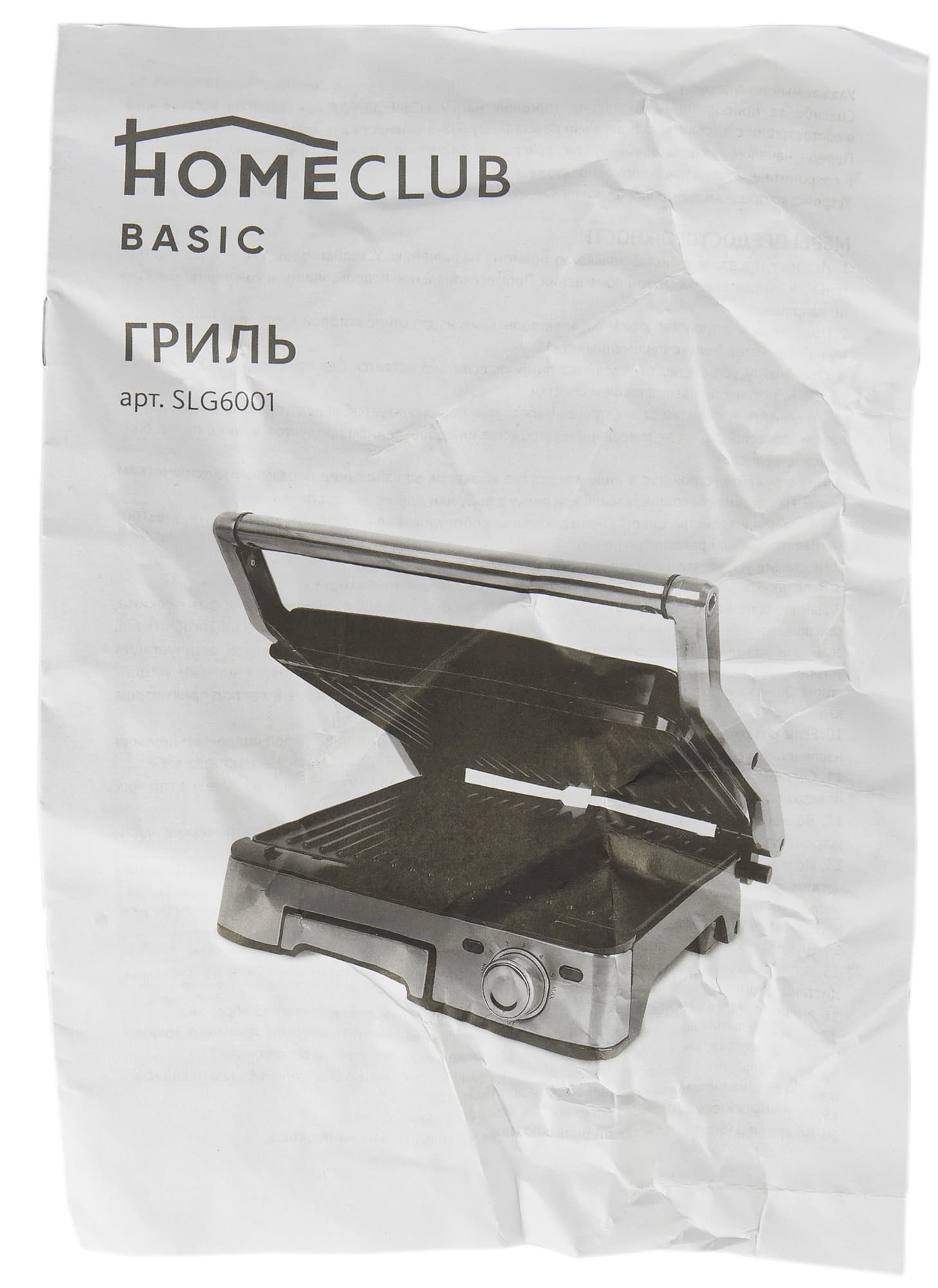 Гриль Home Club Basic SLG6001 довольно прост в уходе. Корпус разрешается протирать влажной тканью, панели надо очищать аккуратно, не используя острых предметов и абразивных средств, чтобы не повредить антипригарное покрытие.