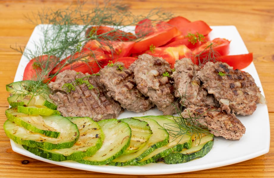 Мы решили жарить котлеты меньшего размера, а в промежутках, когда гриль не нагревался, убирали сок с поверхности — и в итоге добились приемлемого результата. После котлет пожарили на гриле кабачки, порезав их тонко.