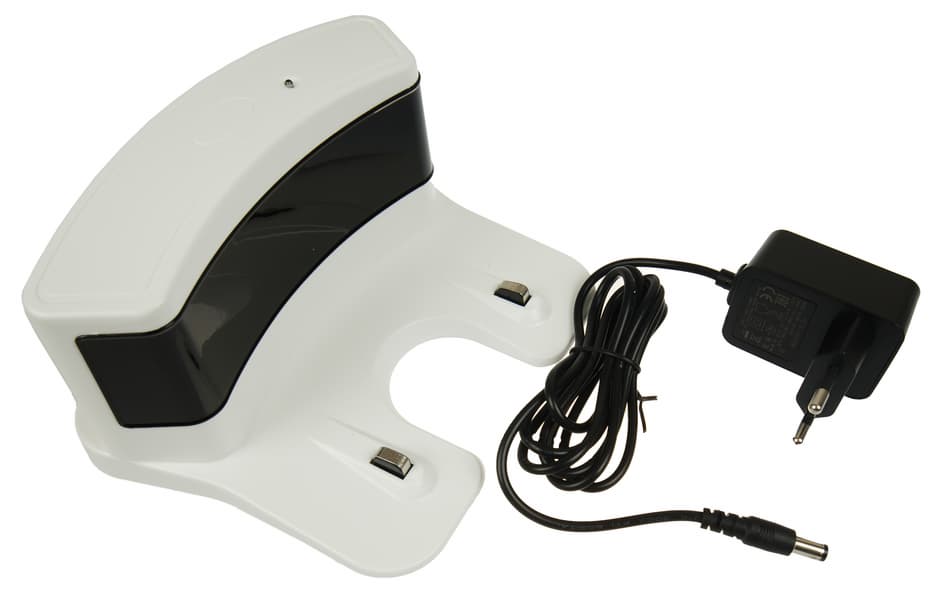 Верхняя часть пластиковой базы выполнена из ИК-прозрачного материала. Под ним расположены датчики, обеспечивающие позиционирование робота при возвращении на зарядку. О процессе питания сигнализирует зеленый светодиод. Контакты подпружинены и имеют ход около 3 мм.