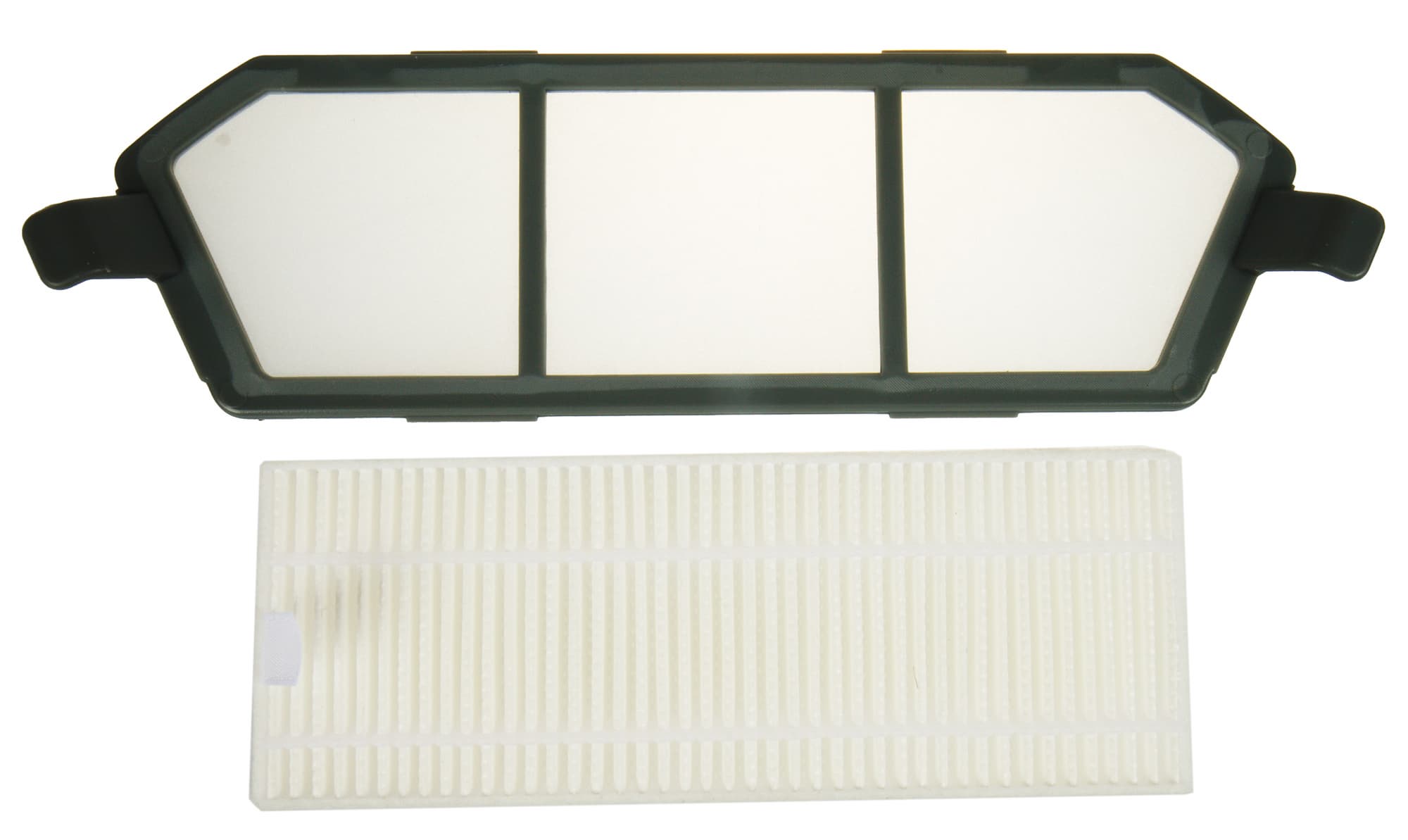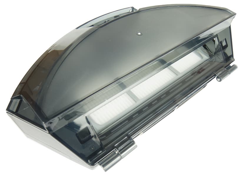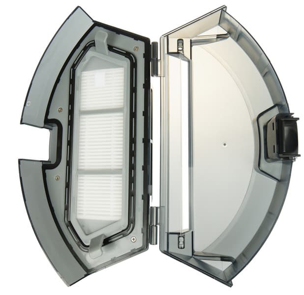 Блок фильтров размещен внутри мусоросборника и представляет собой рамку с мелкой капроновой сеткой, защищающей от повреждений прямоугольный HEPA-элемент светло-серого цвета.