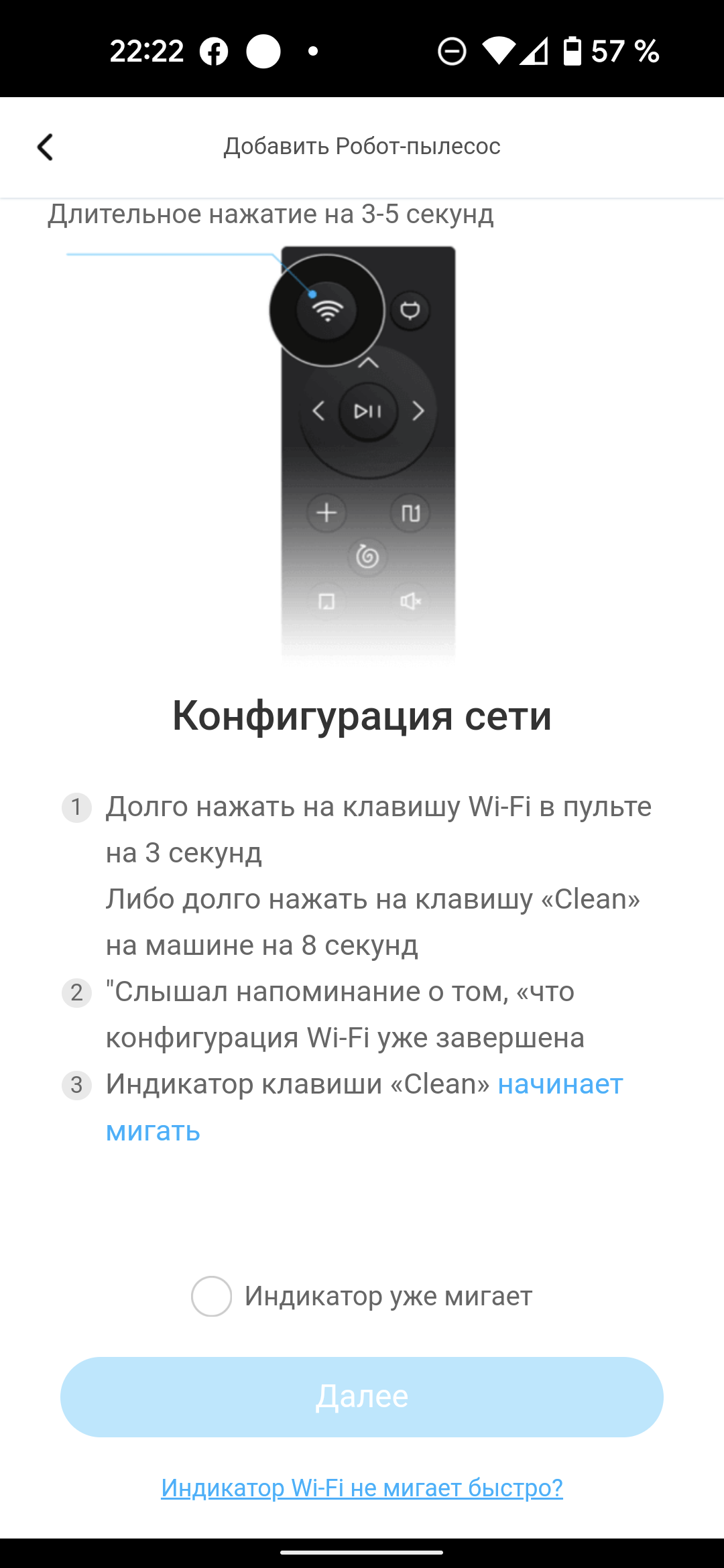 Приложение запрашивает доступ к местоположению устройства и выдает пошаговые инструкции, как включить синхронизацию на устройстве. Если вы уже вставили в пульт батарейки, это можно сделать, нажав на нем соответствующую кнопку.