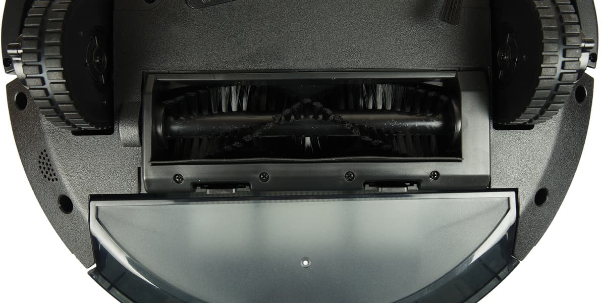 У рамки центральной щетки нет никаких приспособлений, защищающих ротор от случайного наматывания электропроводов: об отсутствии на полу посторонних предметов придется беспокоиться владельцу. Сама щетка также простой, ничем не примечательной конструкции: три ряда V-образных элементов из щетины средней жесткости, без дополнительных ламелей.