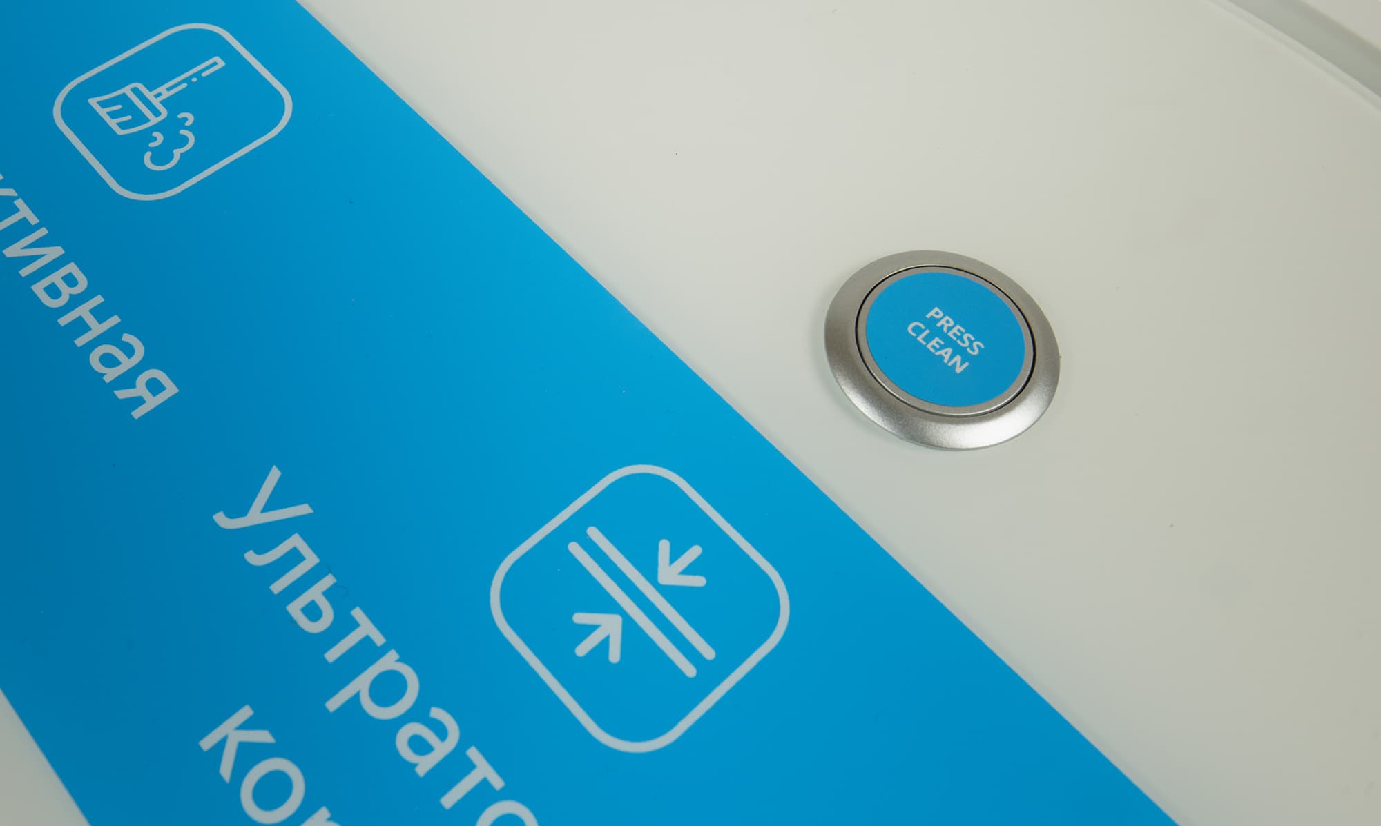На верхней панели располагается кнопка с лаконичной надписью «Press Clean», запускающая и приостанавливающая уборку.
