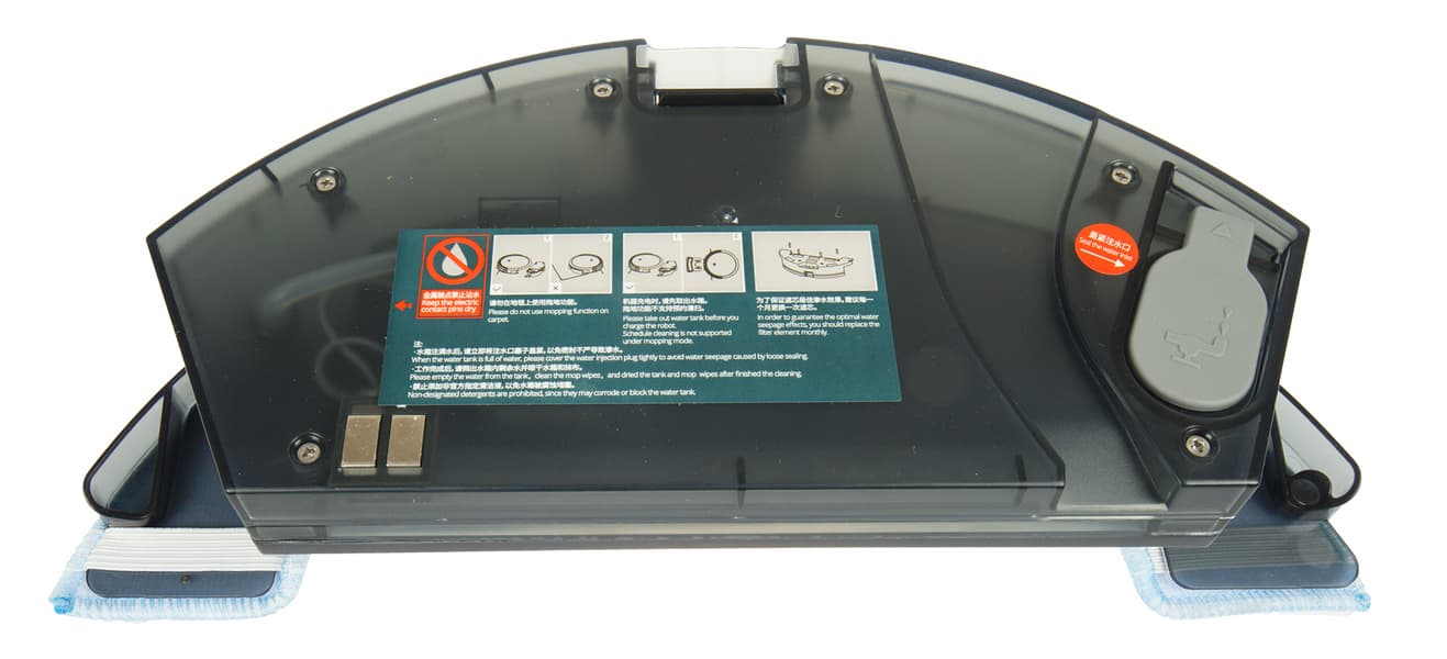 У него также есть емкость для пыли, но основное его назначение — протирка твердых поверхностей D-образной тряпкой, крепящейся к нижней поверхности контейнера при помощи липучек-велкро и дополнительно фиксируемой двумя резинками. Вода из резервуара поступает на тряпку через четыре микроотверстия.