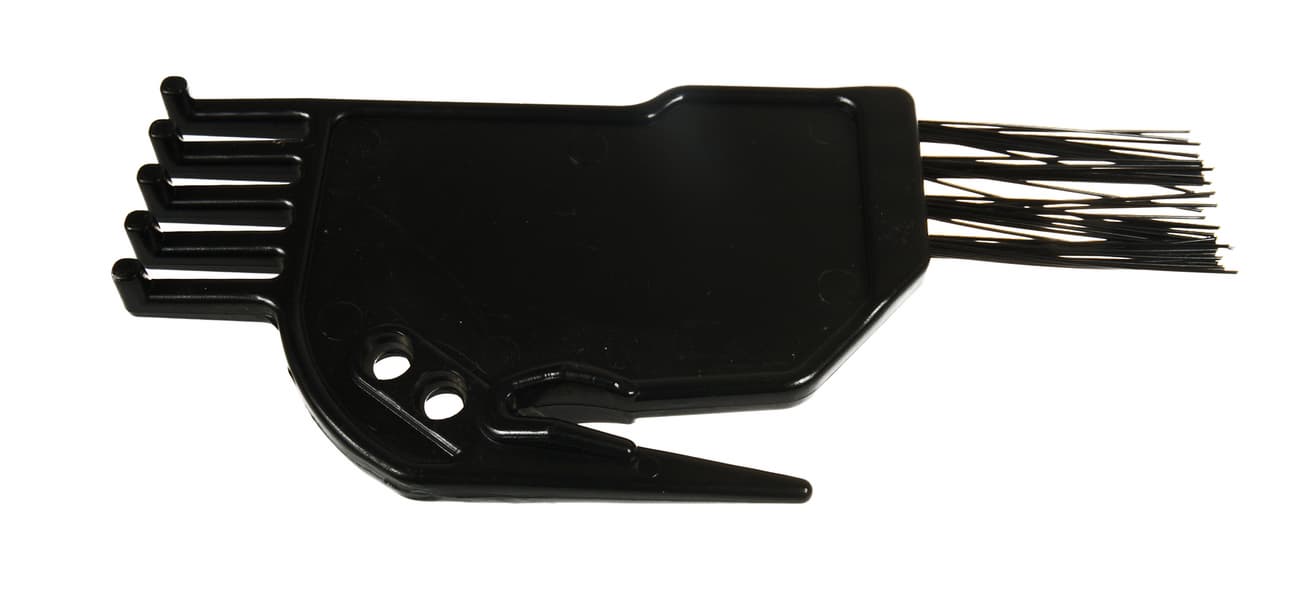 В комплект пылесоса входит также приспособление для чистки со щеткой, пластиковой гребенкой для ухода за фильтром тонкой очистки и лезвием, предназначенным для срезания с роторного элемента намотавшихся на него ниток и длинных волос.