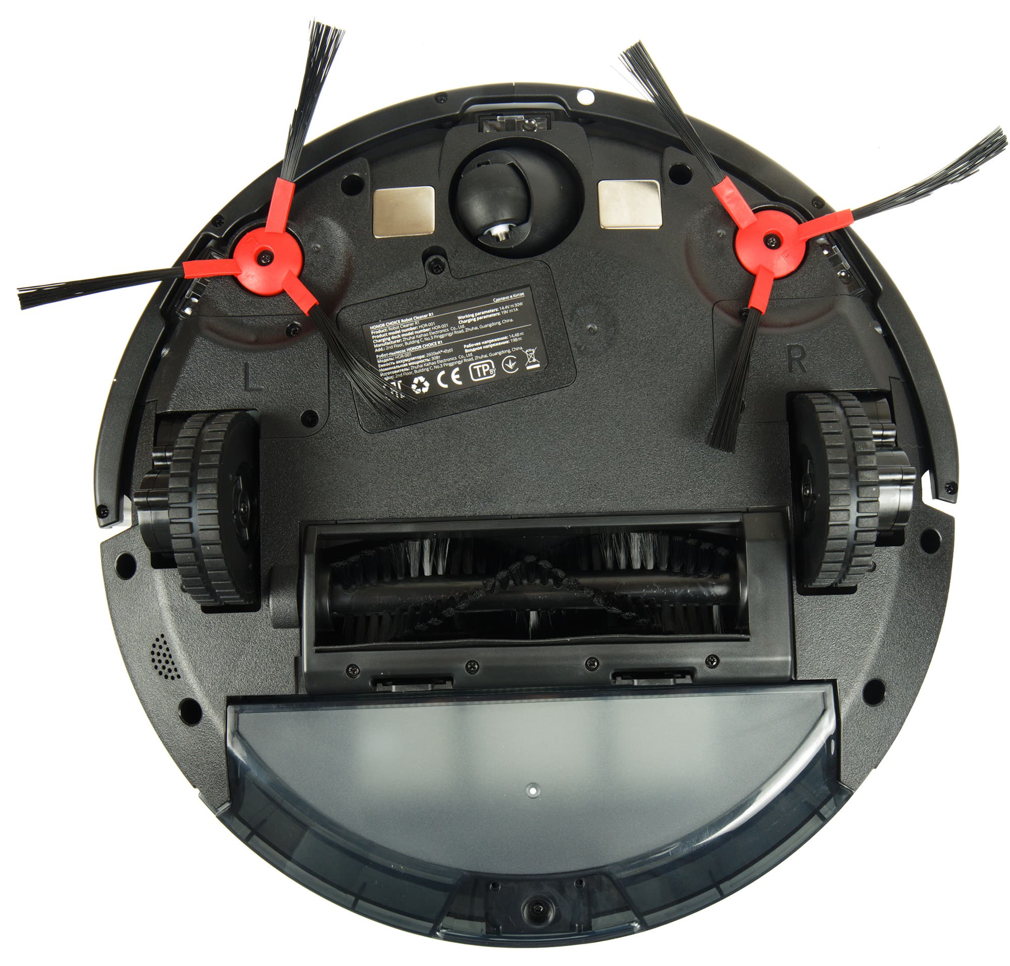 Две боковые щетки крепятся на саморезах и чуть различаются геометрией. Правая и левая щетки промаркированы буквам «R» и «L».